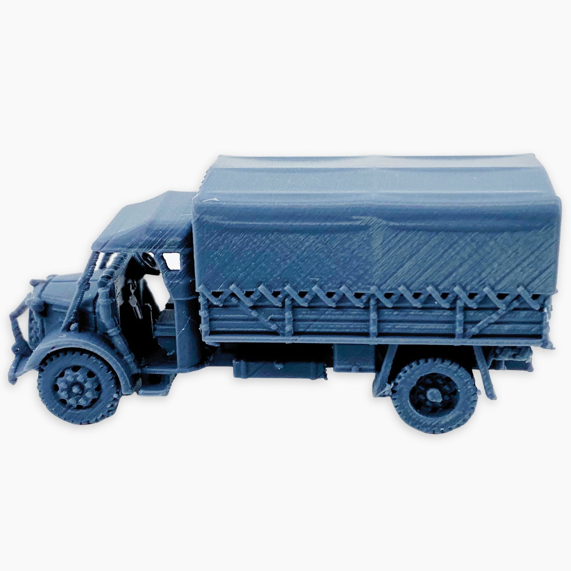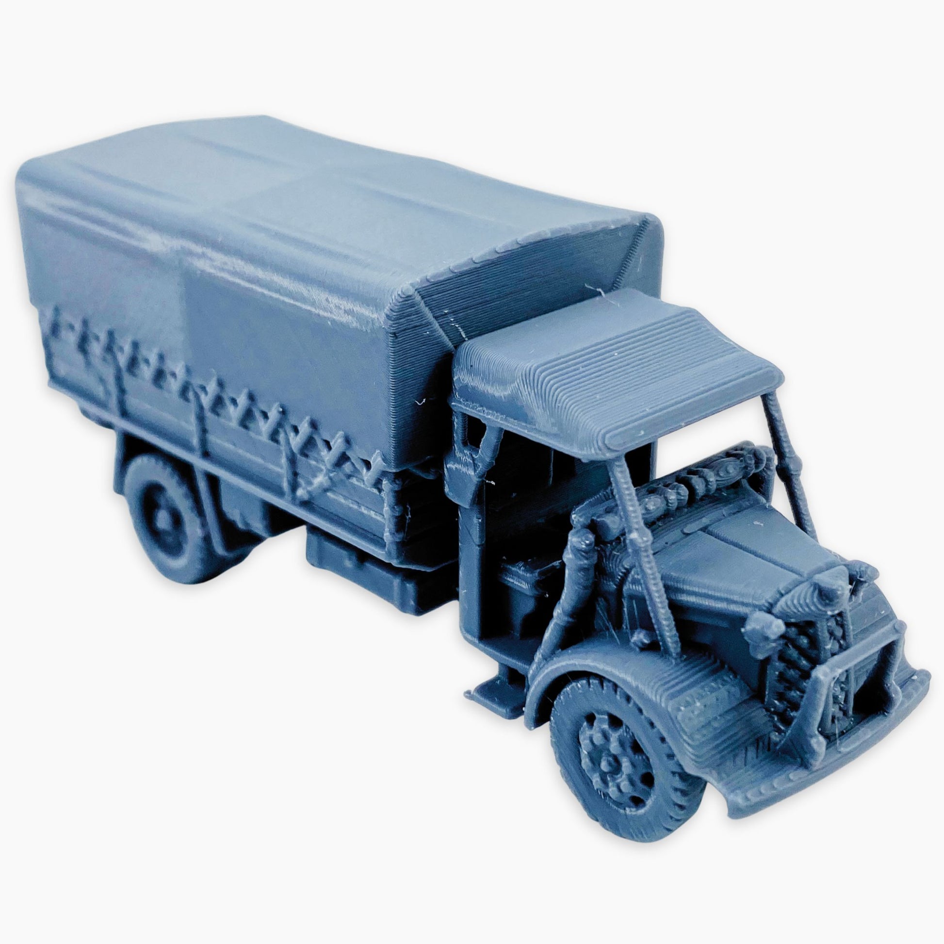 Austin K3 (early covered) miniature, depicting the first production version of the British 3-ton 4x2 military truck with a canvas-covered cargo bed. This early model, with its simpler cab and body design, was widely employed by the British Army and Commonwealth forces during World War II for transporting troops, supplies, and equipment. Durable and versatile, it played a vital role in logistics across many fronts. A great choice for adding authenticity to WWII dioramas, wargaming scenery, or vehicle collections in multiple scales.