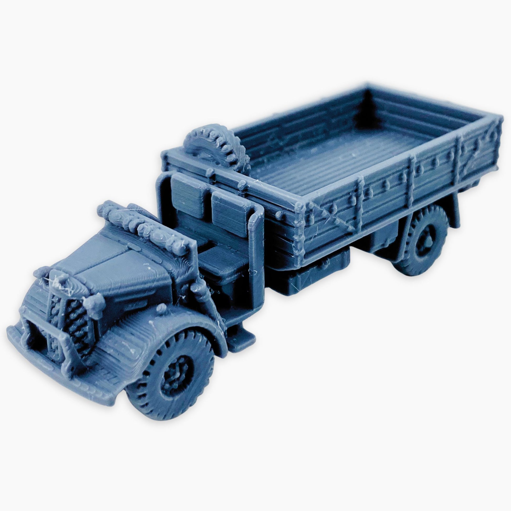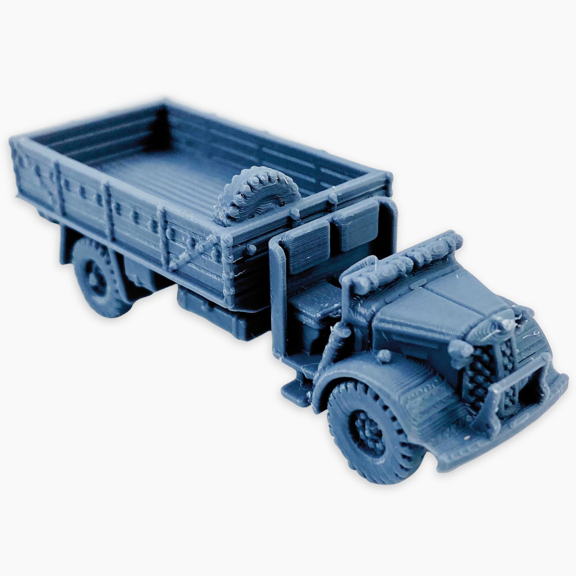 Austin K3 (no window) miniature, representing the British 3-ton 4x2 military truck in a variant without side cab windows. Used extensively by the British Army and Commonwealth forces during World War II, the K3 was a dependable workhorse for transporting troops, equipment, and supplies across different theaters of war. This version highlights the more utilitarian field configuration, making it a great addition for WWII dioramas, wargaming scenery, or historical vehicle collections in multiple scales.