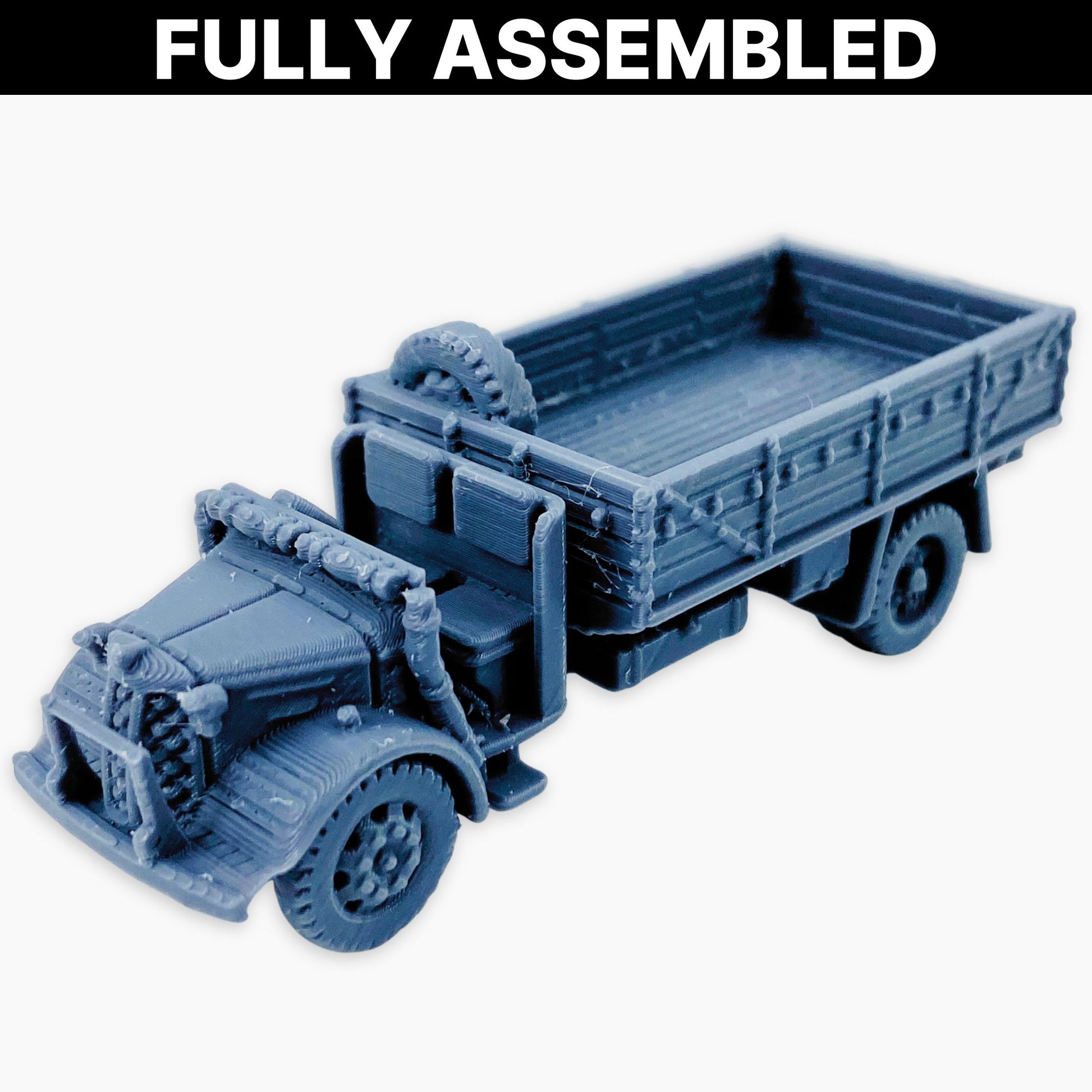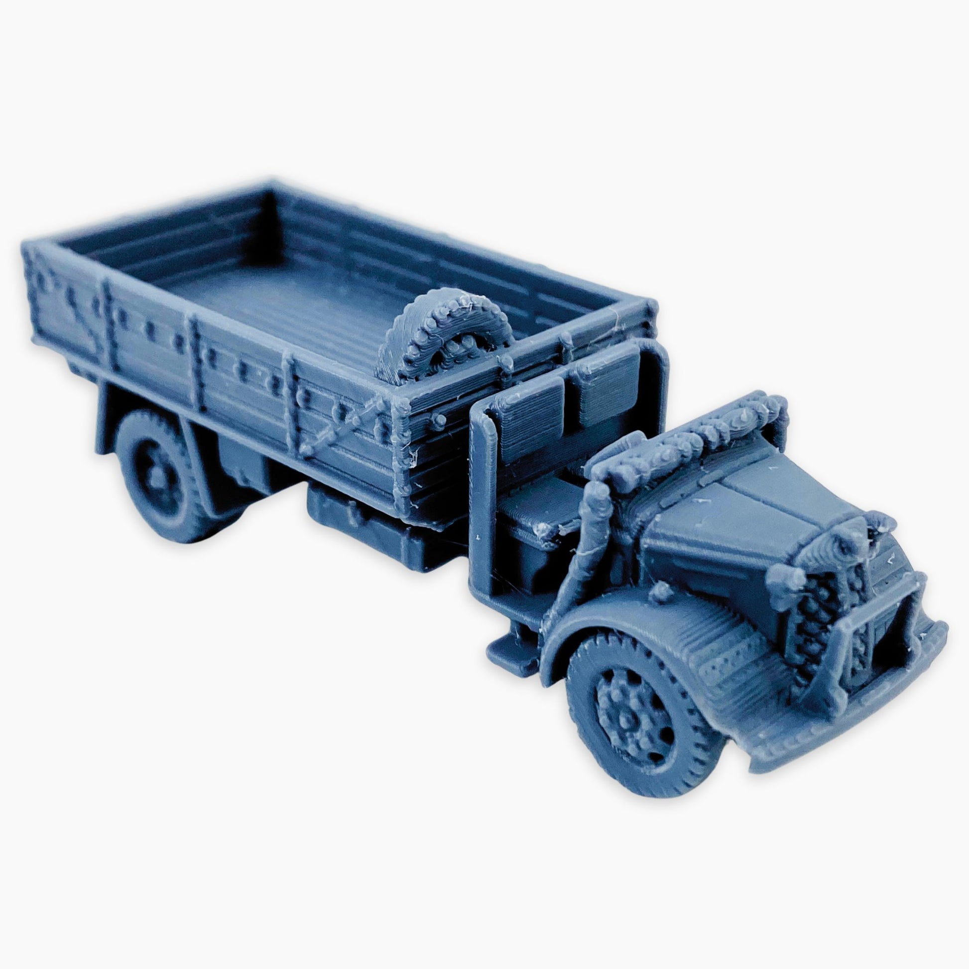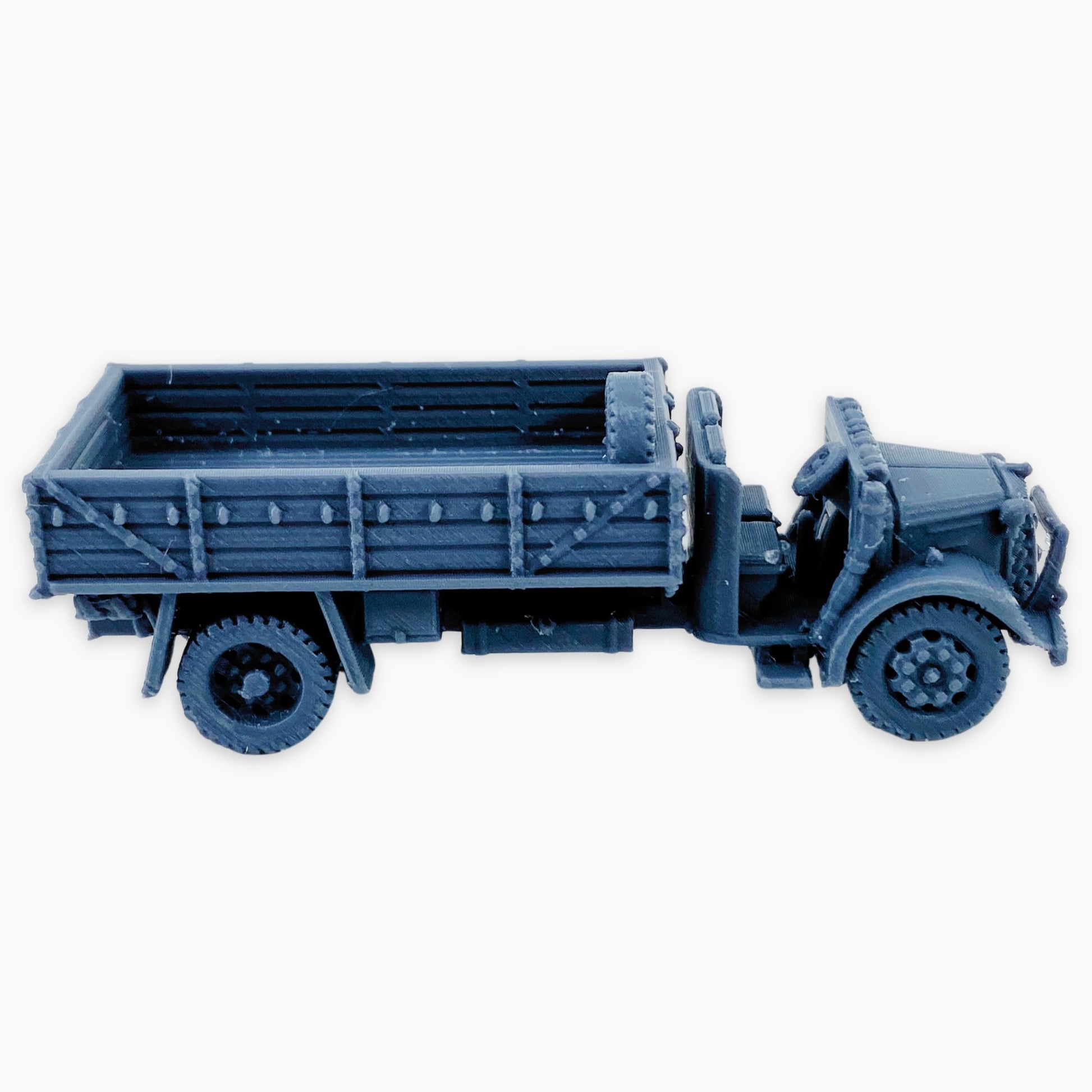 Austin K3 (no window dualies) miniature, representing the British 3-ton 4x2 military truck with dual rear wheels and a simplified cab design without windows. Used extensively by the British Army and Commonwealth forces during World War II, this rugged variant was built for practicality and durability, serving in supply, troop transport, and general logistics roles across many theaters. A reliable workhorse of the war, it makes a great addition to dioramas, wargaming scenery, or WWII vehicle collections in multiple scales.