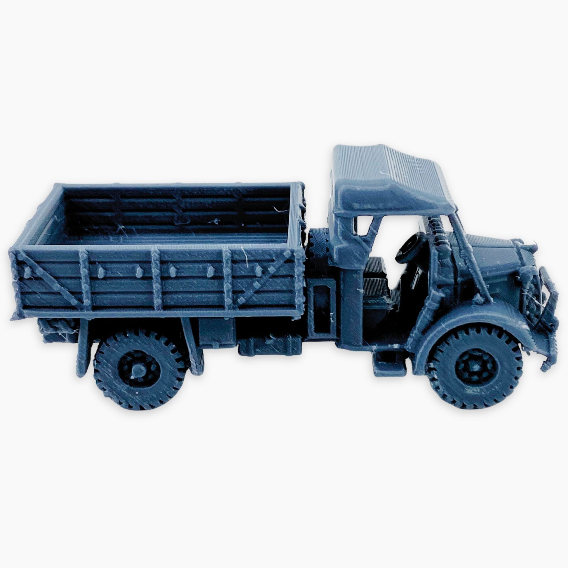 Austin K30 miniature, representing the lighter 30-cwt 4x2 military truck produced by Austin during World War II. Unlike the larger K6, the K30 was a smaller and more versatile vehicle, commonly used by the British Army for transport of troops, supplies, and equipment. Its reliability and adaptability made it a valuable support vehicle in many theaters of the war. A great choice for dioramas, wargaming scenery, or WWII vehicle collections in multiple scales.
