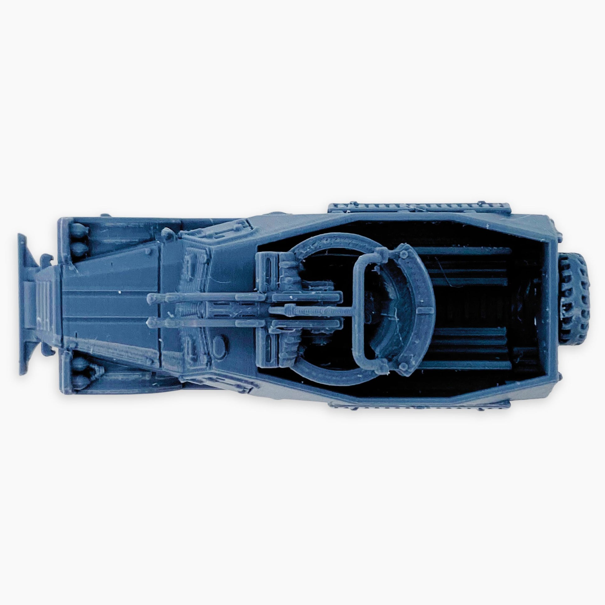 BTR-152A (sand channel) miniature, depicting the Soviet 6×6 armored personnel carrier in its anti-aircraft variant, equipped with sand channels mounted externally for improved mobility in desert or rough terrain. The BTR-152A replaced the standard troop compartment with a ZPU-2 twin 14.5 mm KPV heavy machine gun mount, giving it strong firepower against low-flying aircraft as well as light ground targets. Widely used by the Soviet Army, Warsaw Pact forces, and exported to numerous allied nations, the addition of sand channels reflects a practical field adaptation for off-road operations. This model is perfect for Cold War–era dioramas, wargaming scenery, or historical vehicle collections in multiple scales.