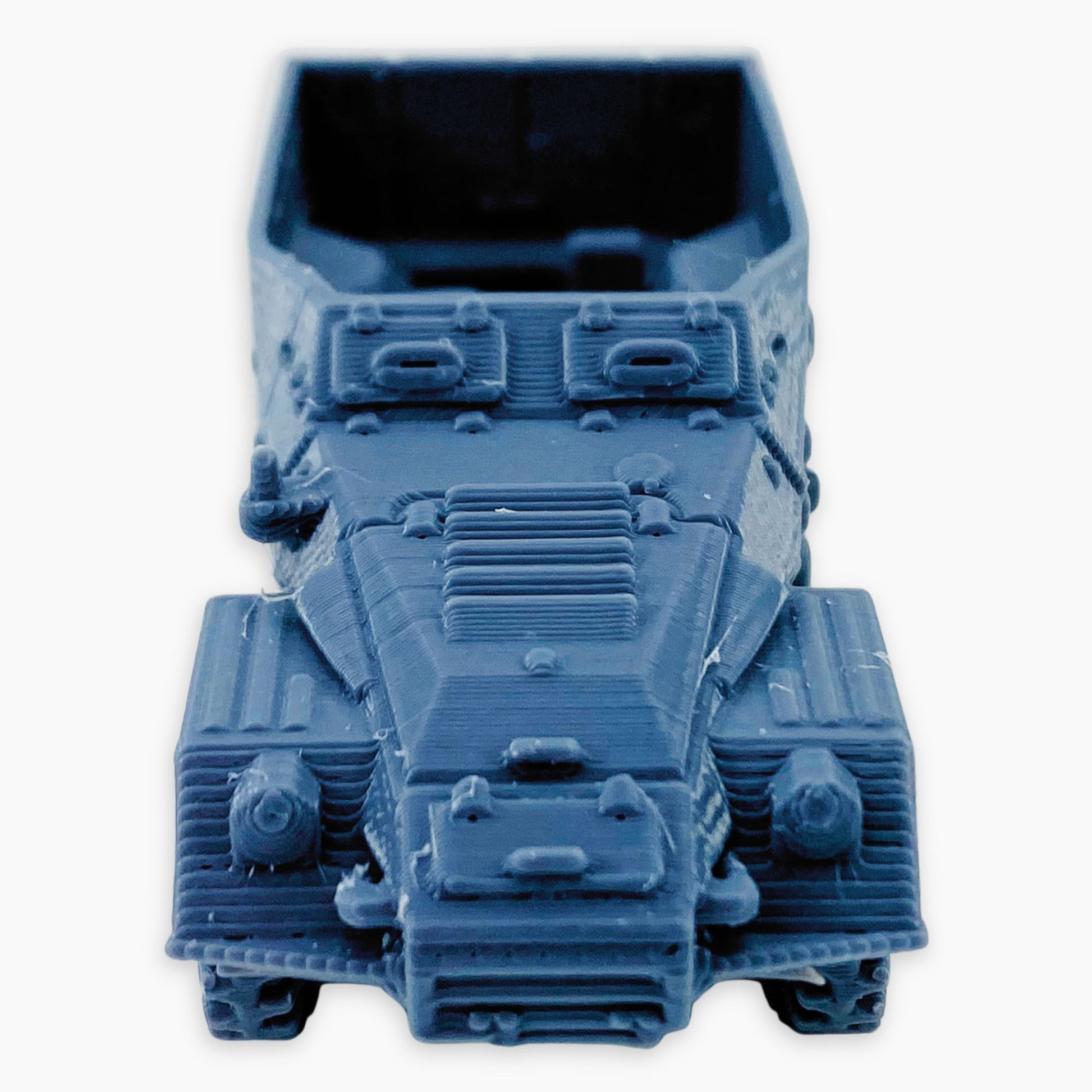BTR-40 miniature, representing the Soviet 4×4 armored personnel carrier introduced in the early 1950s. Based on the chassis of the GAZ-63 truck, the BTR-40 was the first postwar Soviet APC, designed to carry infantry while offering protection against small arms fire and shrapnel. Featuring an open-top hull, it could transport up to eight soldiers and was often armed with a light or heavy machine gun for additional fire support. Though lightly armored, it was highly mobile and saw service with the Soviet Army, Warsaw Pact countries, and many export customers. This model is a great addition for Cold War–era dioramas, wargaming scenery, or historical vehicle collections in multiple scales.