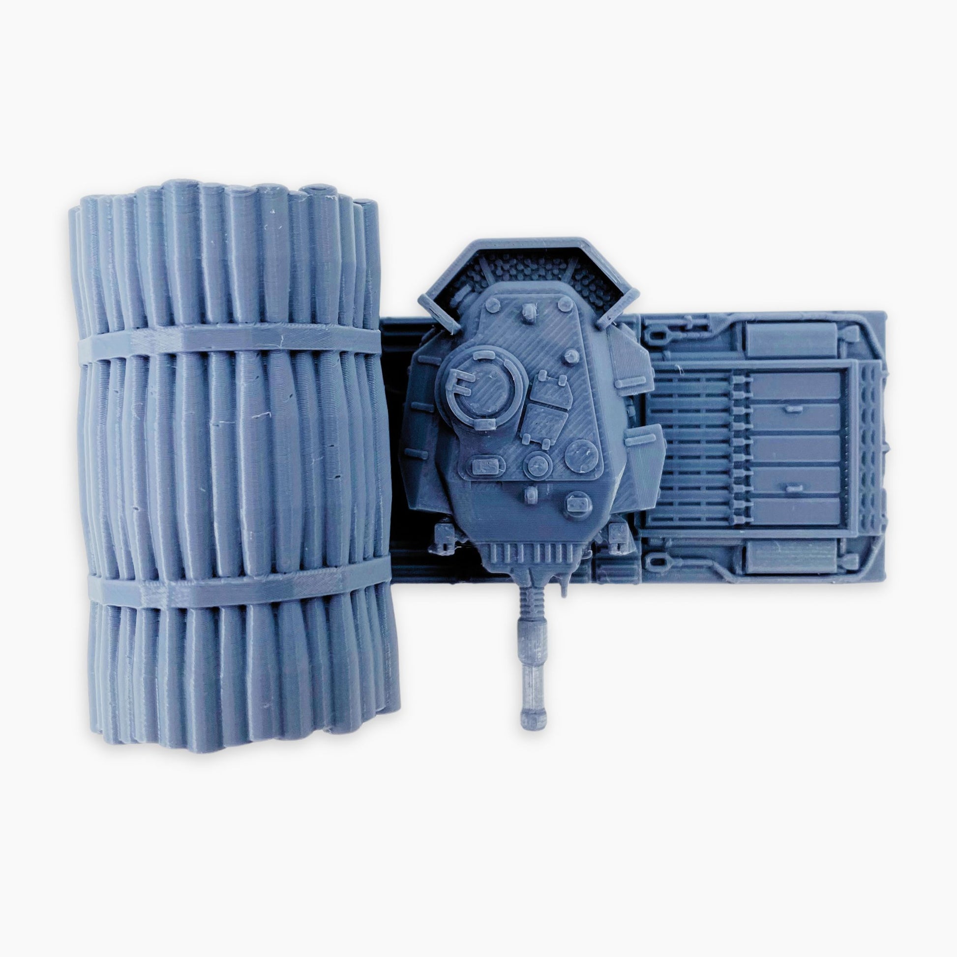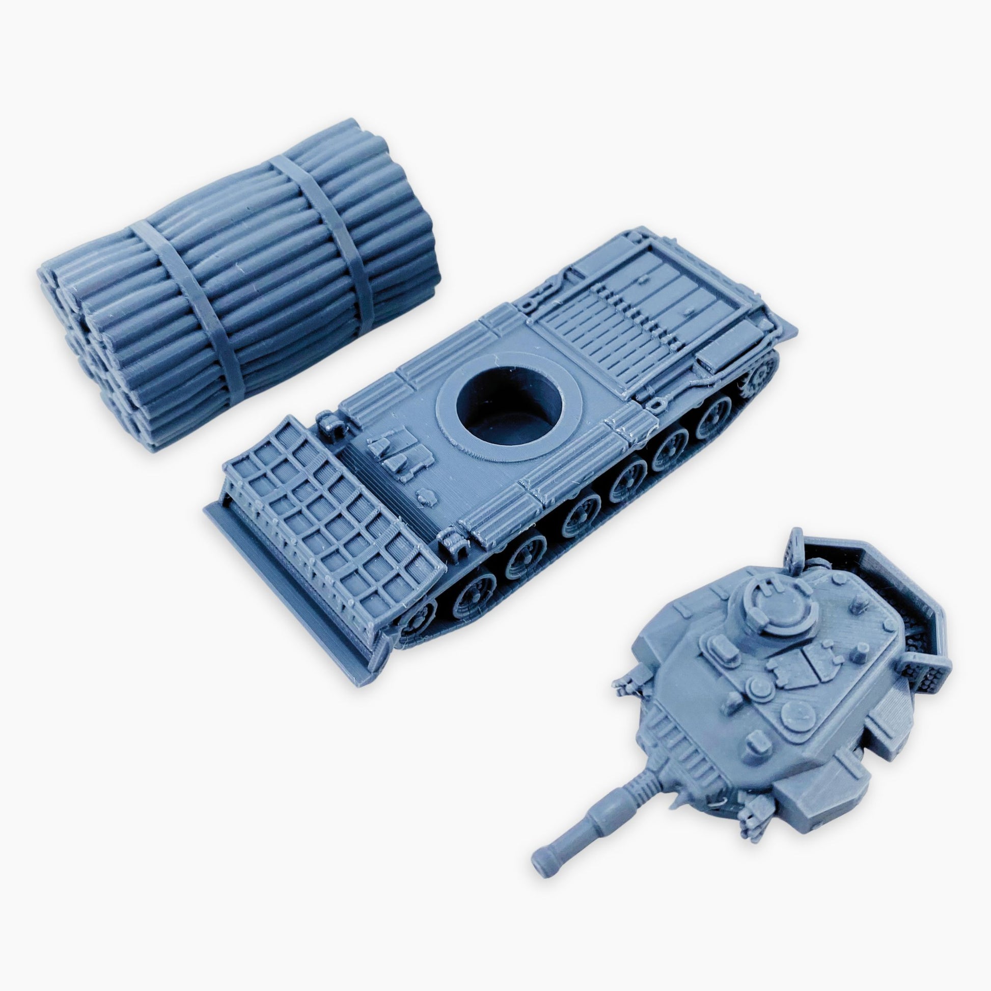 Centurion Mk IV (fascine) miniature, representing the British Cold War–era main battle tank equipped with a large fascine bundle mounted on the front hull for battlefield engineering tasks. Developed in the early 1950s, the Mk IV carried the powerful 20-pounder (84 mm) gun, thick armor, and excellent mobility, while the fascine allowed it to fill trenches, ditches, and other obstacles to aid the advance of following armored units. This variant highlights the versatility of the Centurion platform, serving not only as a combat tank but also as a crucial support vehicle in armored operations. A distinctive piece, perfect for Cold War dioramas, wargaming scenery, or historical vehicle collections in multiple scales.