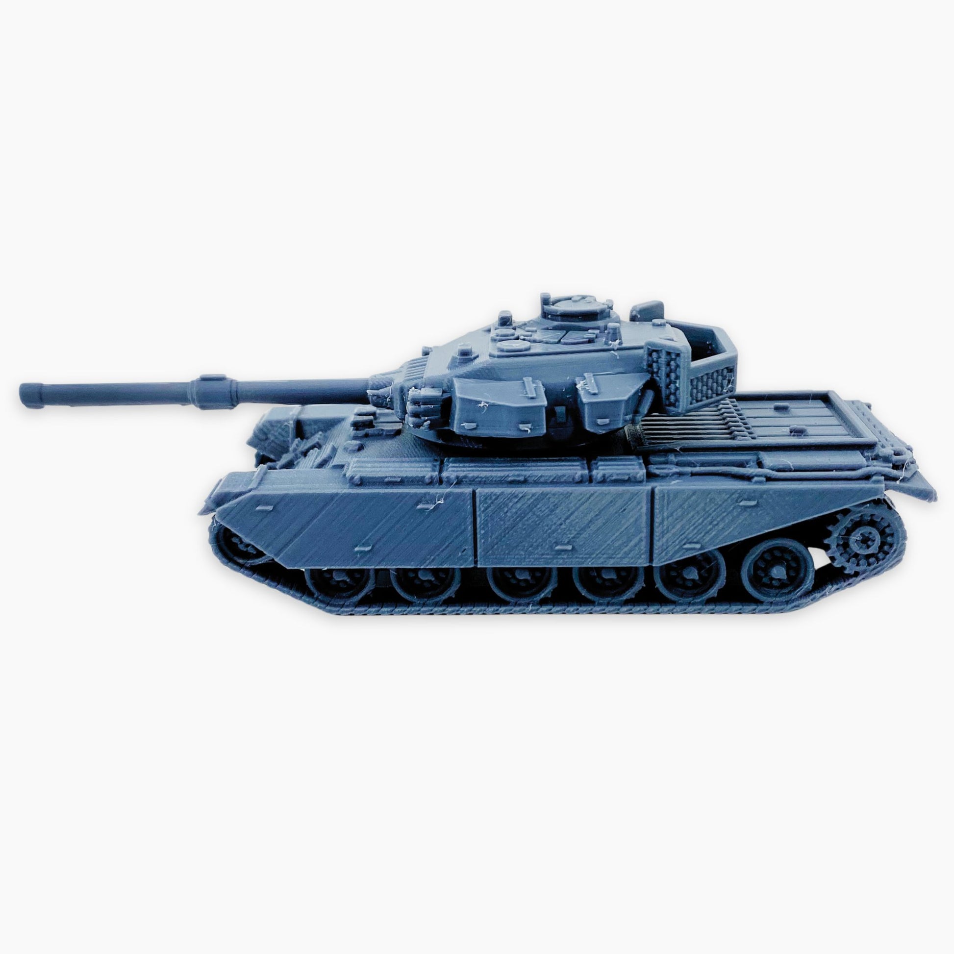 Centurion Mk IV (skirts) miniature, representing the British Cold War–era main battle tank fitted with protective side skirts along the suspension and tracks. Developed in the early 1950s, the Mk IV carried the powerful 20-pounder (84 mm) gun, thick armor, and excellent mobility that made the Centurion series one of the most effective tanks of its generation. The addition of skirts provided extra defense against debris and shaped-charge weapons, improving battlefield survivability. Operated by the British Army and exported to allied nations, this version is a distinctive choice for Cold War dioramas, wargaming scenery, or armored vehicle collections in multiple scales.