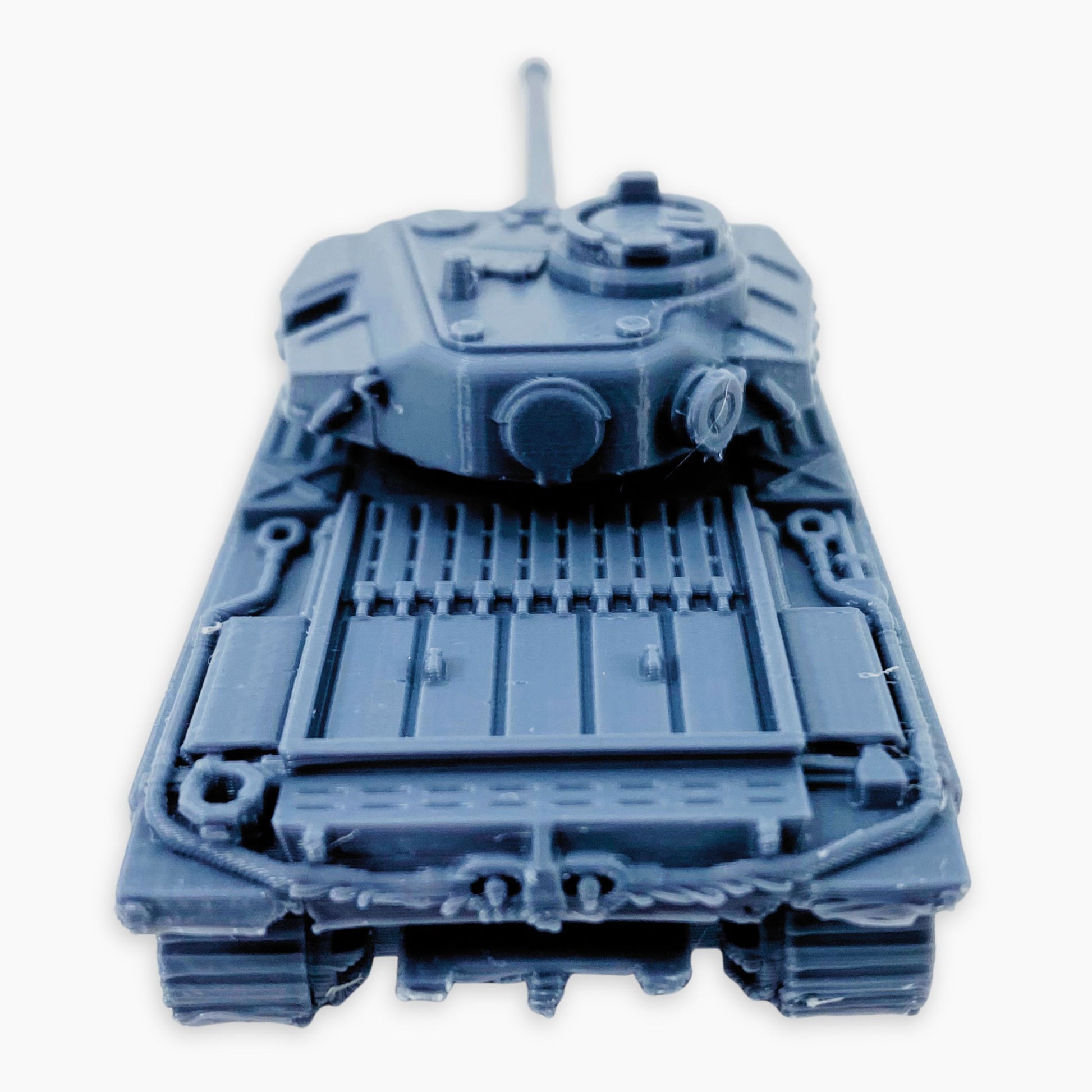 Centurion Mk3 (skirts) miniature, representing the British Cold War–era main battle tank fitted with protective side skirts over the suspension and tracks. Introduced in the early 1950s, the Centurion Mk3 featured the powerful 20-pounder (84 mm) gun, improved armor, and better fire control compared to earlier models, making it one of the most advanced tanks of its time. The addition of skirts enhanced protection from debris and shaped-charge weapons, increasing survivability on the battlefield. Widely used by the British Army and exported to several allied nations, the Centurion Mk3 became a cornerstone of early Cold War armored forces. This model is a great choice for Cold War dioramas, wargaming scenery, or historical vehicle collections in multiple scales.