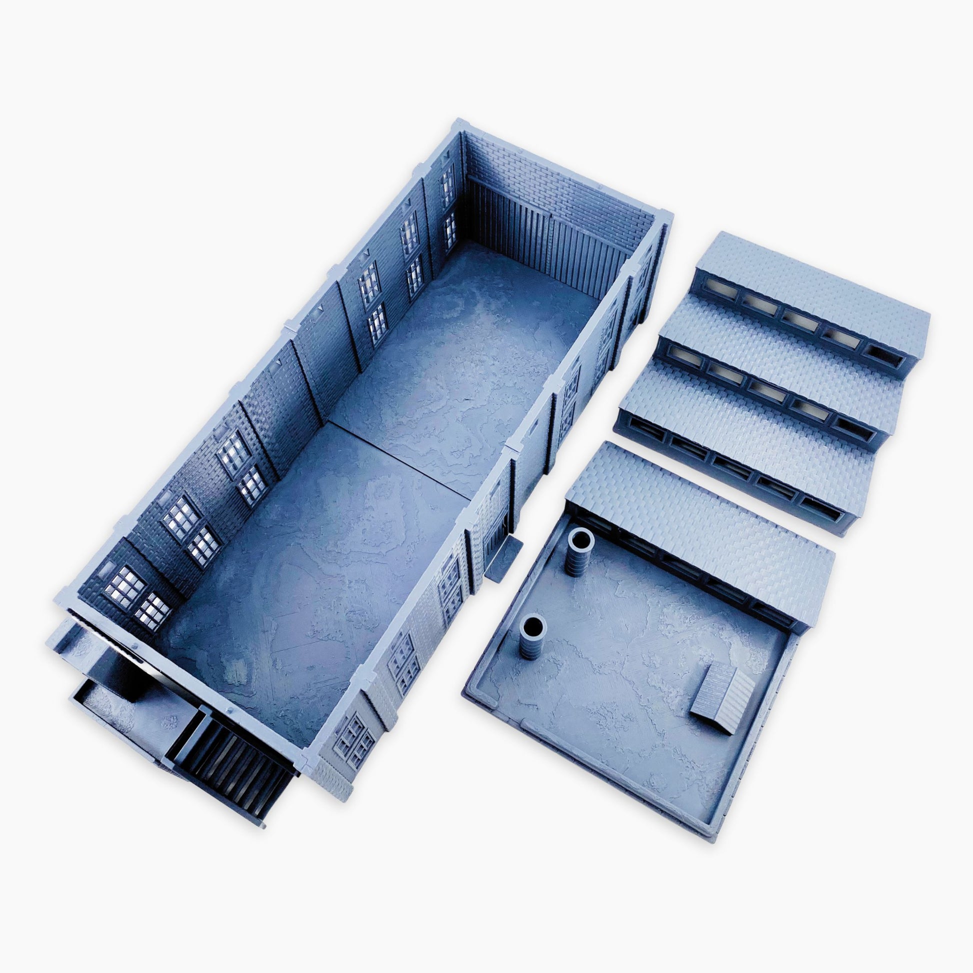 Factory Building miniature, based on a World War II–era industrial structure, perfect for tabletop scenery, terrain, or diorama setups. Highly detailed inside and out, it captures the look of wartime factories with realistic architecture and texture. The model comes in 12 pieces and is suitable for a wide range of games and settings, from historical WWII battlefields to alternate-history or modern urban scenes. An excellent centerpiece or backdrop for enhancing immersion in multiple scales.