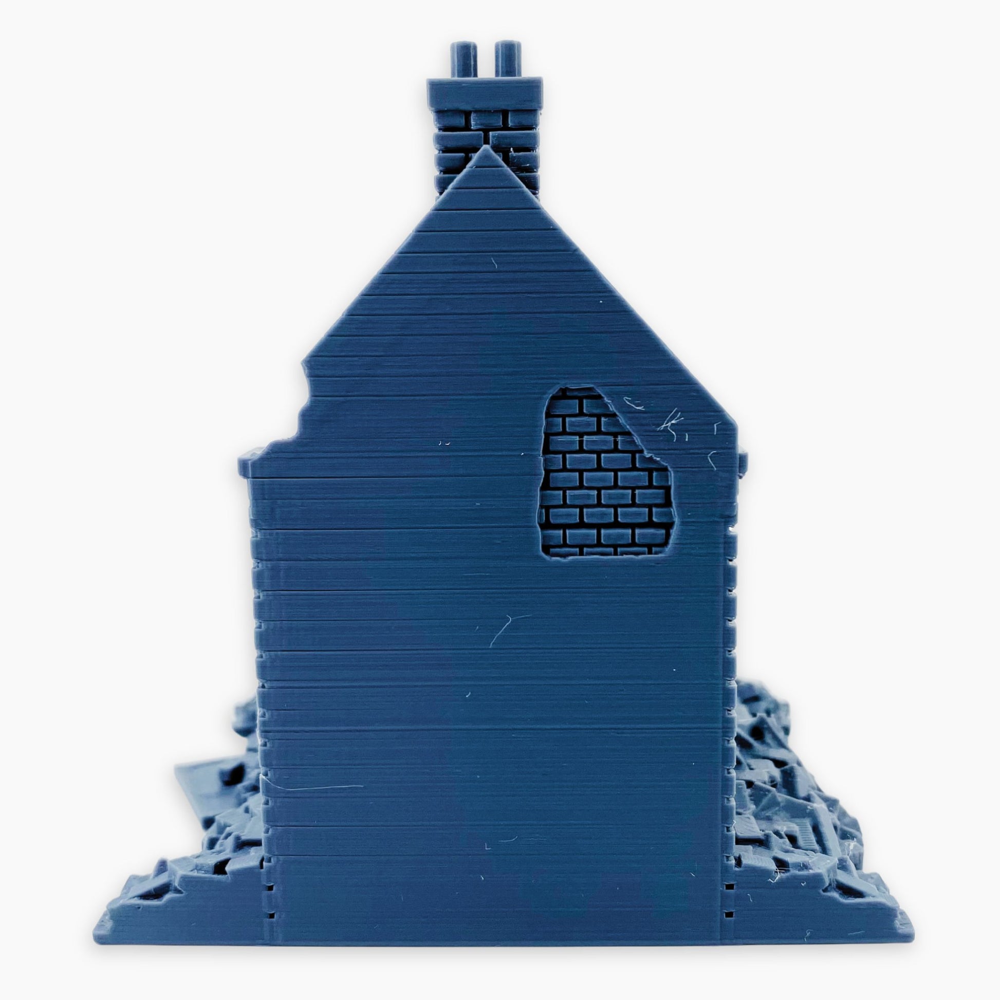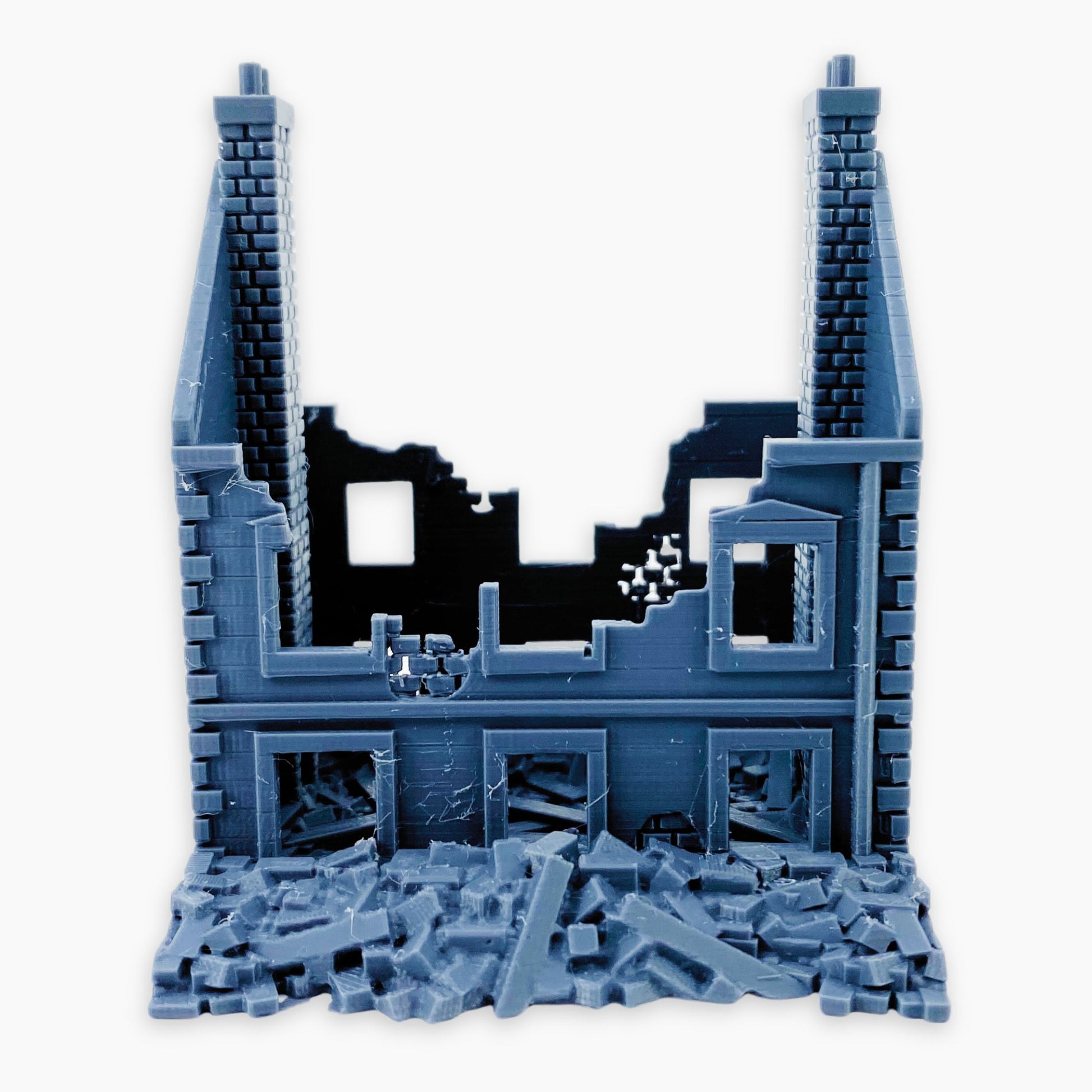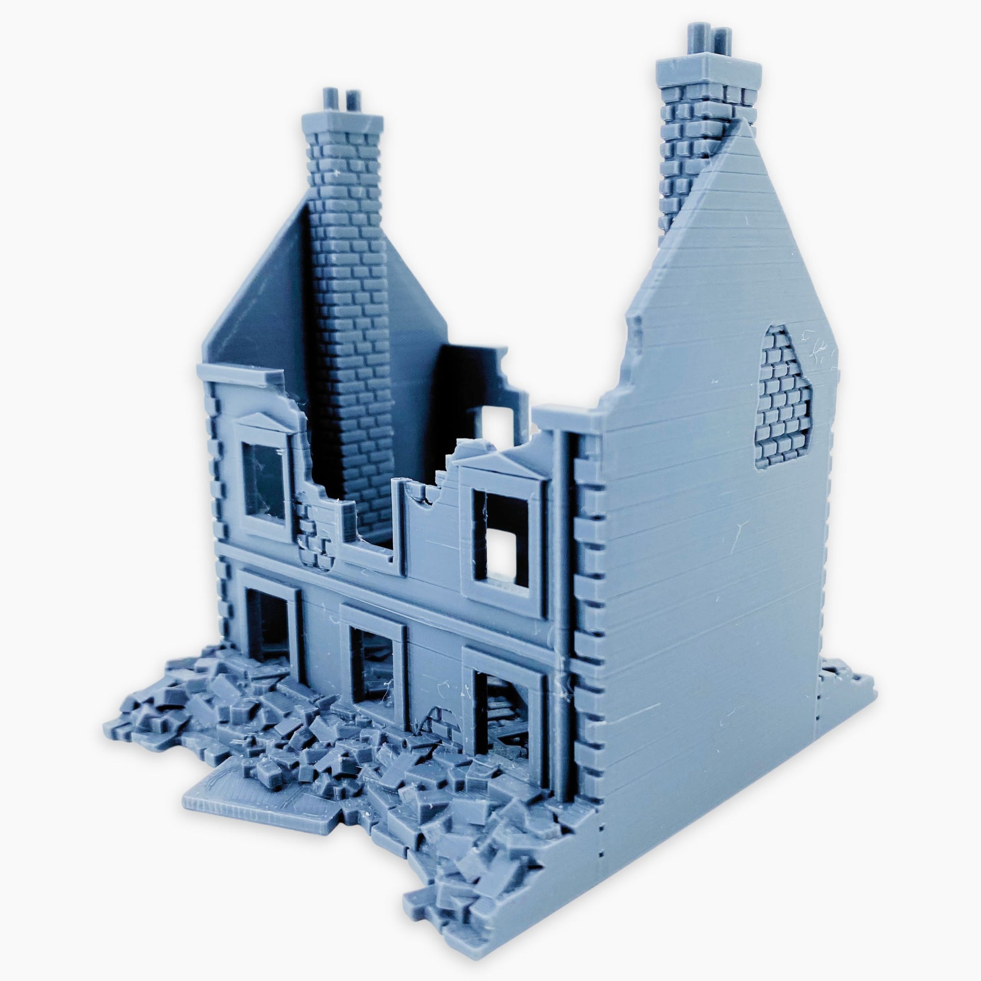 French Row House Ruins 3 miniature, depicting a European-style residence destroyed by wartime damage, cast as a single-piece model. Featuring realistic broken walls, exposed interiors, and detailed textures, it captures the look of a bombed-out urban street scene. Compact and ready to place, this one-piece ruin is easy to use as a standalone terrain feature or combined with other ruined buildings for larger setups. Perfect for dioramas, wargaming scenery, or tabletop battlefields, it works seamlessly in World War II, modern, or alternate-history settings across multiple scales.