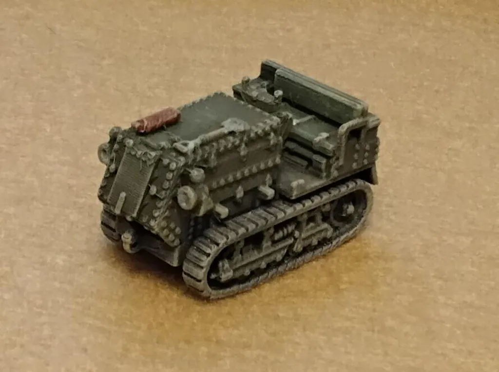 The Holt 5 Ton Armored Artillery Tractor miniature represents a tracked vehicle designed for towing artillery and providing logistical support. Based on the Holt tractor chassis, it was armored to protect the crew while transporting heavy guns across rough terrain. Used primarily in World War I and the interwar period, this vehicle played a key role in enhancing artillery mobility on the battlefield.