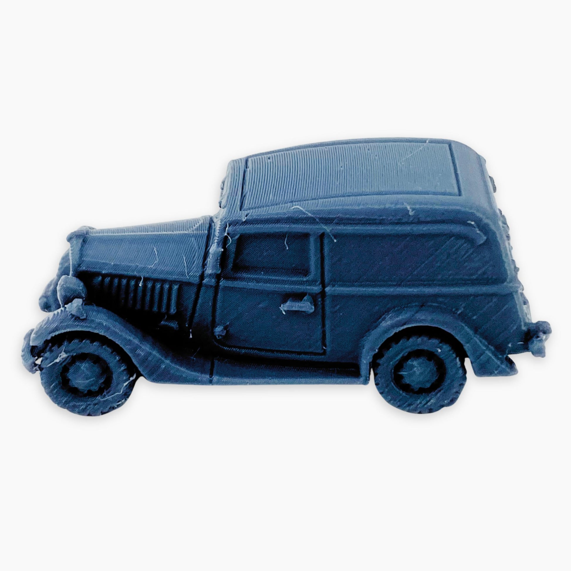 Polski Fiat 508/III (delivery van) miniature, representing the utility version of the Polish light car designed with an enclosed rear body for transporting goods and equipment. Built under license from Fiat, the 508/III was used by the Polish Army before and during World War II for staff duties, liaison work, and light transport, with delivery van variants proving especially practical for moving supplies in the field. Compact, reliable, and emblematic of pre-war Poland, this model is ideal for dioramas, wargaming scenery, or WWII vehicle collections in multiple scales.