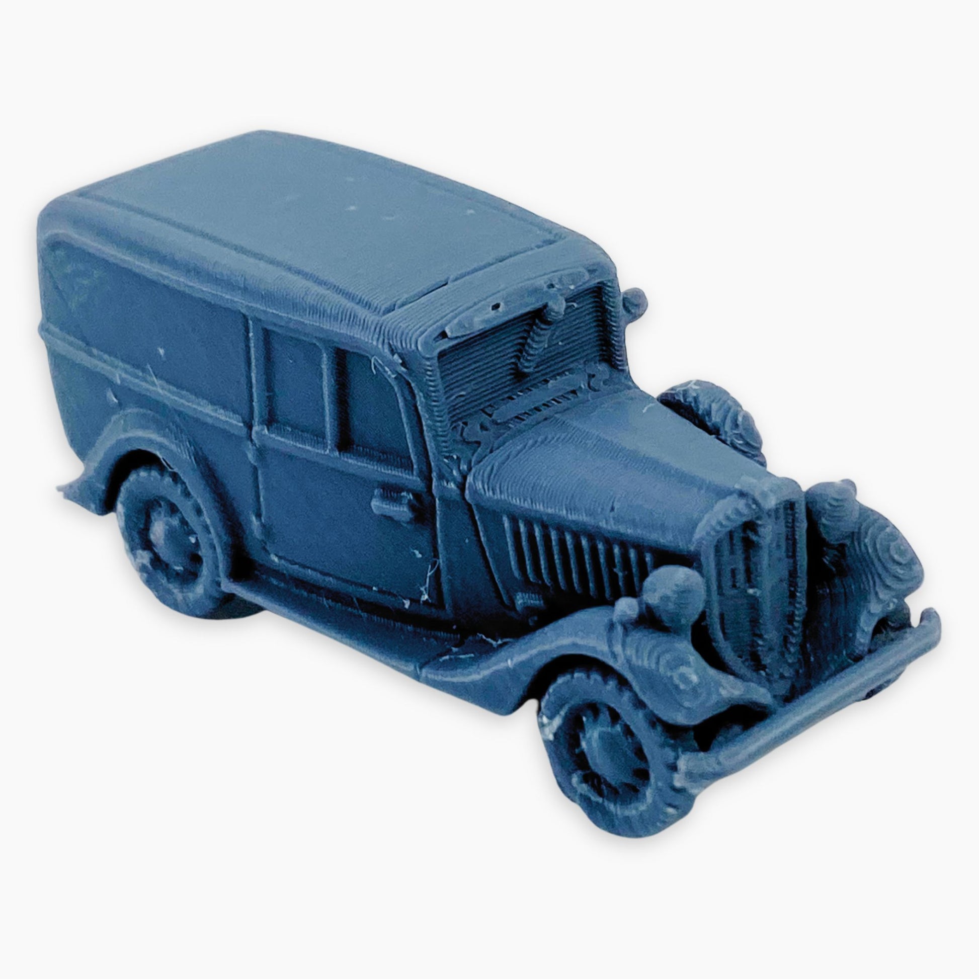 Polski Fiat 508/III (panel van) miniature, depicting the utility version of the Polish light car adapted with a closed cargo body. Produced under license from Fiat, the 508/III served the Polish Army before and during World War II in roles such as staff transport, liaison duties, and light logistics, with the panel van variant especially useful for carrying supplies, tools, or communications equipment. Compact, versatile, and practical, this model is perfect for dioramas, wargaming scenery, or WWII vehicle collections in multiple scales.