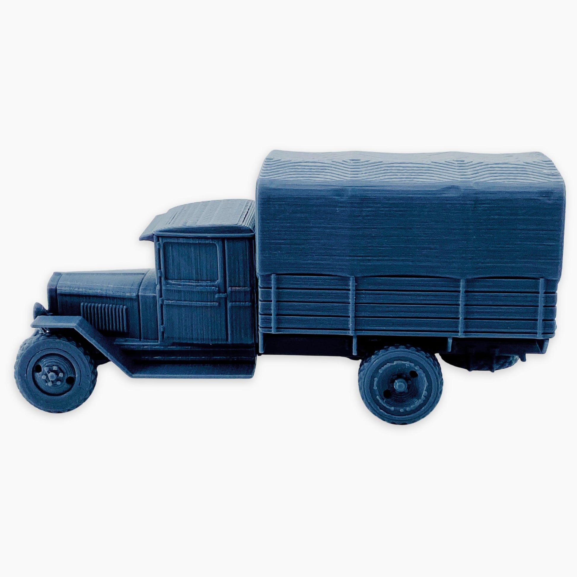 The ZIS-5 was a Soviet 3-ton, 4x2 military truck widely used during World War II. Produced from 1934 by the Moscow-based Zavod imeni Stalina (ZIS) factory, it was known for its durability, simplicity, and ease of repair. Though underpowered and slow, it served as a reliable workhorse, transporting troops, supplies, and towing artillery. Wartime models like the ZIS-5V were further simplified to speed up production, using wood for cabs and fenders.
