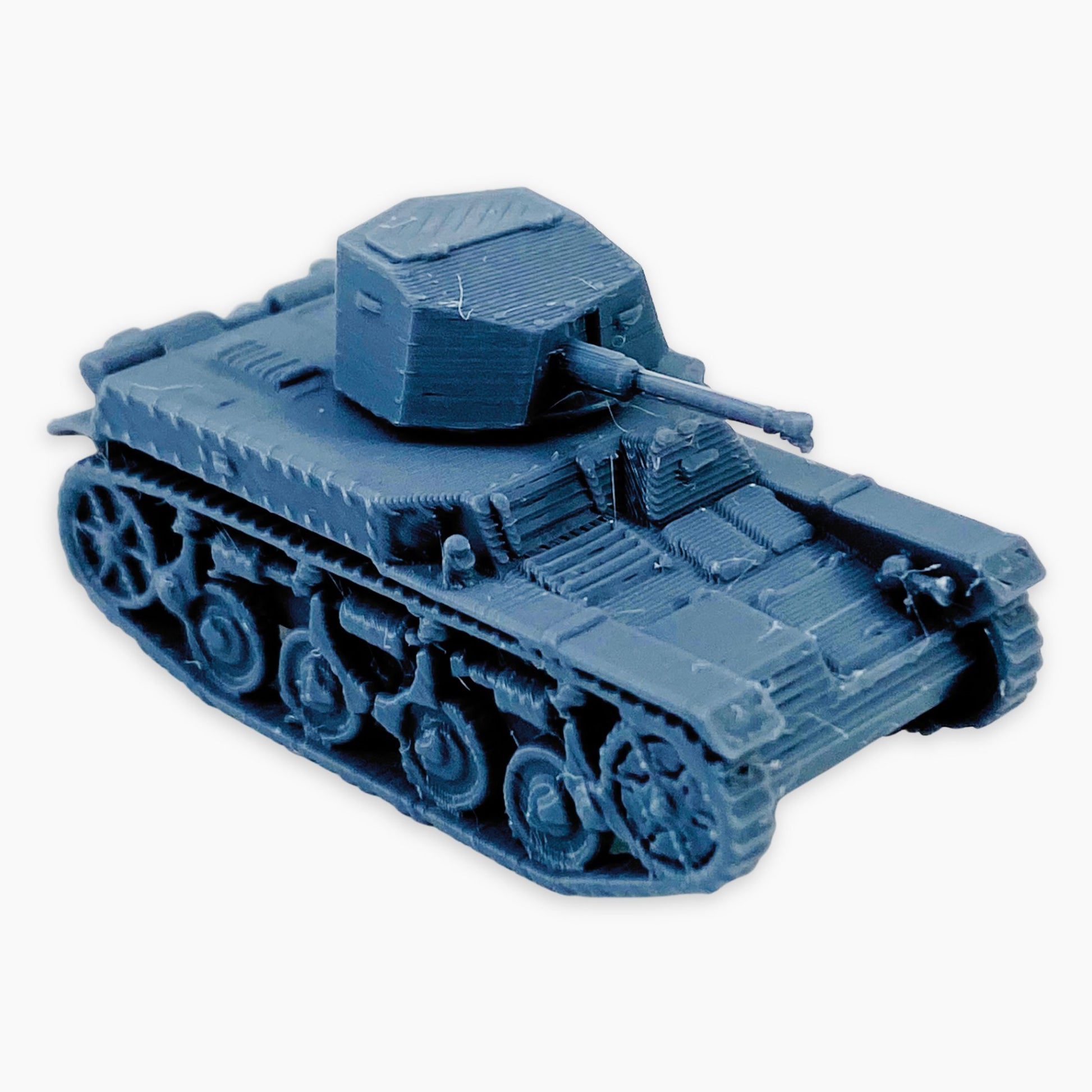 AMR 35 ZT1 (13.2mm), a French light reconnaissance tank developed in the late 1930s, equipped with a 13.2 mm Hotchkiss heavy machine gun mounted in a small one-man turret. Designed for fast scouting and infantry support, it offered improved firepower over the earlier machine-gun-only variants while maintaining mobility and light armor. Operated by a two-man crew, the AMR 35 ZT1 served with French cavalry and reconnaissance units during the Battle of France in 1940. Perfect for early World War II French dioramas and tabletop wargames.