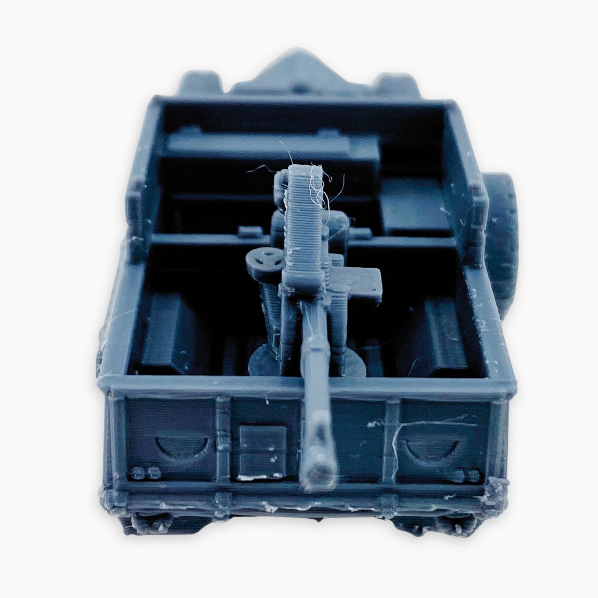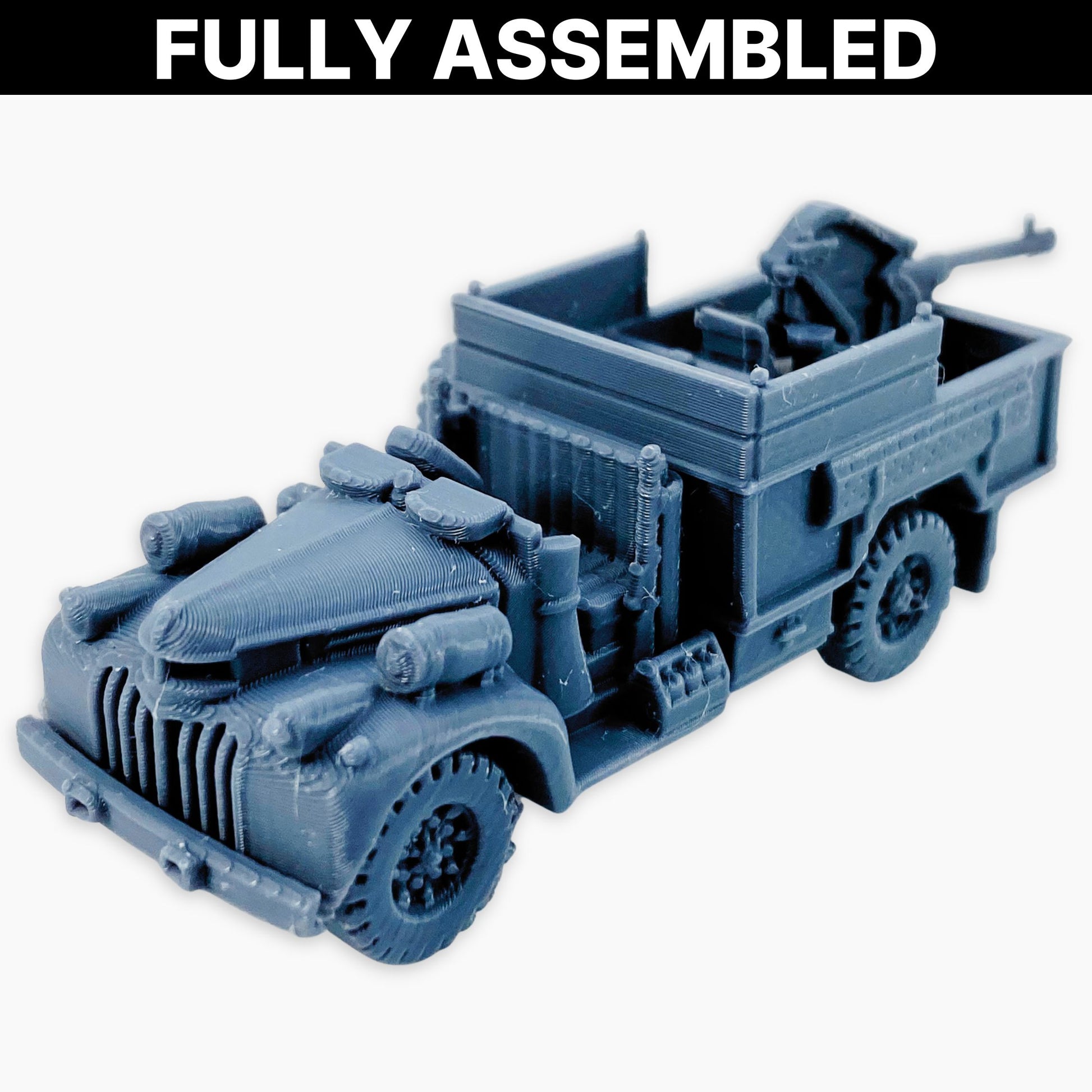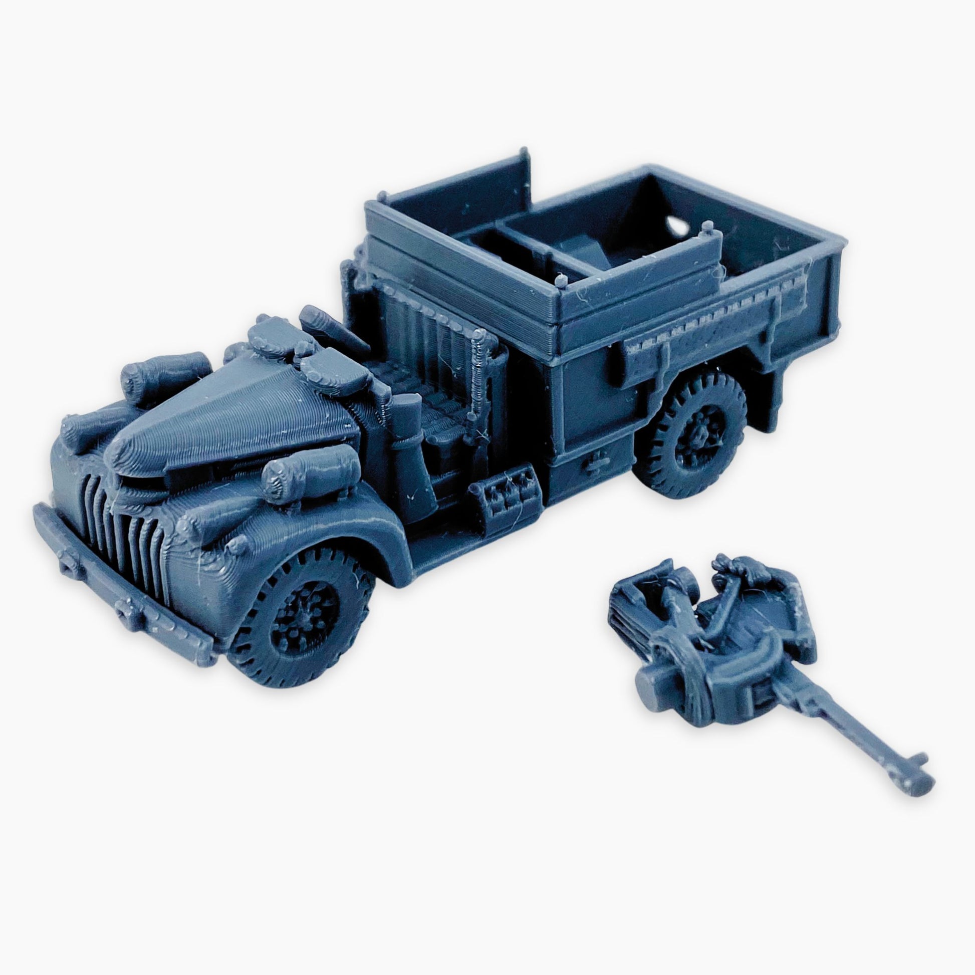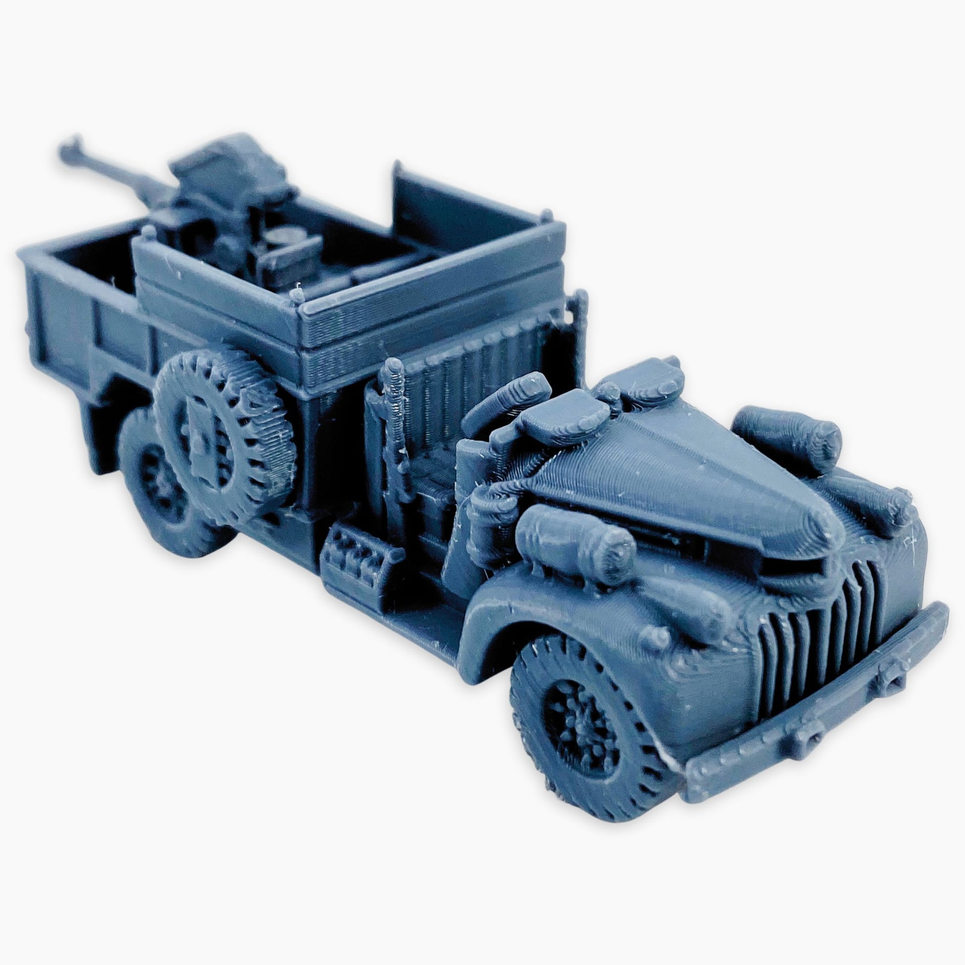 The Chevrolet 1533 30 CWT (Breda 20mm) is a modified version of the standard British-pattern desert truck, adapted for combat roles by Free French forces in North Africa. Equipped with the Italian 20mm Breda autocannon, this vehicle was commonly used in a reconnaissance or support role. The lightweight truck offered excellent mobility across desert terrain, and the addition of the Breda gun provided effective anti-air and anti-light vehicle firepower. Its rugged chassis and adaptability made it a favorite among units in the harsh conditions of the Western Desert campaign.