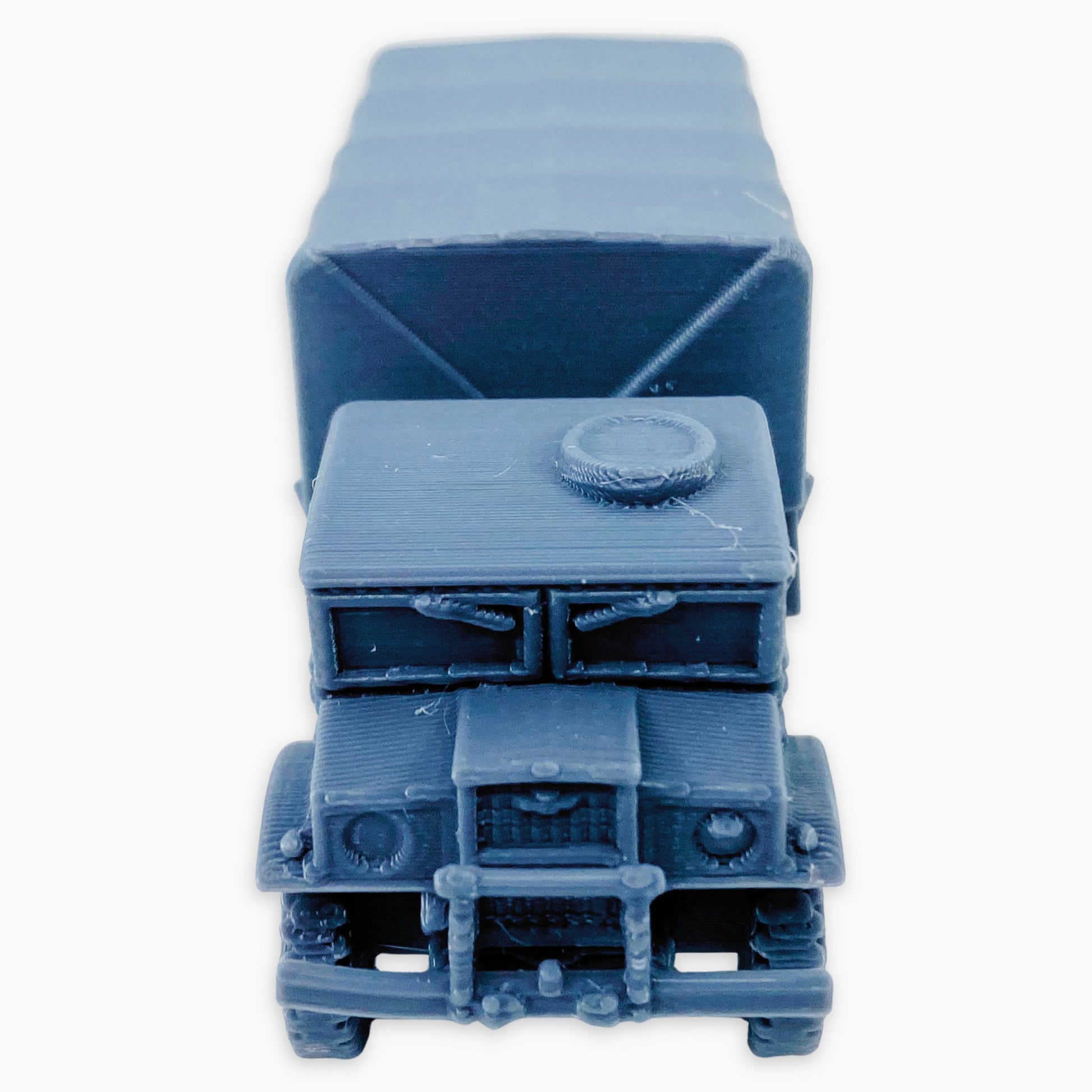 CMP 3t C60L (Covered) miniature, depicting the Canadian Military Pattern 3-ton truck with a full canvas cover over the cargo area. Used extensively by Allied forces—including Canada, the United Kingdom, Australia, New Zealand, South Africa, India, and even the Soviet Union via Lend-Lease—this durable vehicle served in roles ranging from troop transport to supply delivery across multiple theaters of World War II. Featuring its distinctive cab-over-engine design, long wheelbase, and detailed canvas canopy, this model is perfect for dioramas, wargaming scenery, or WWII vehicle collections in multiple scales.