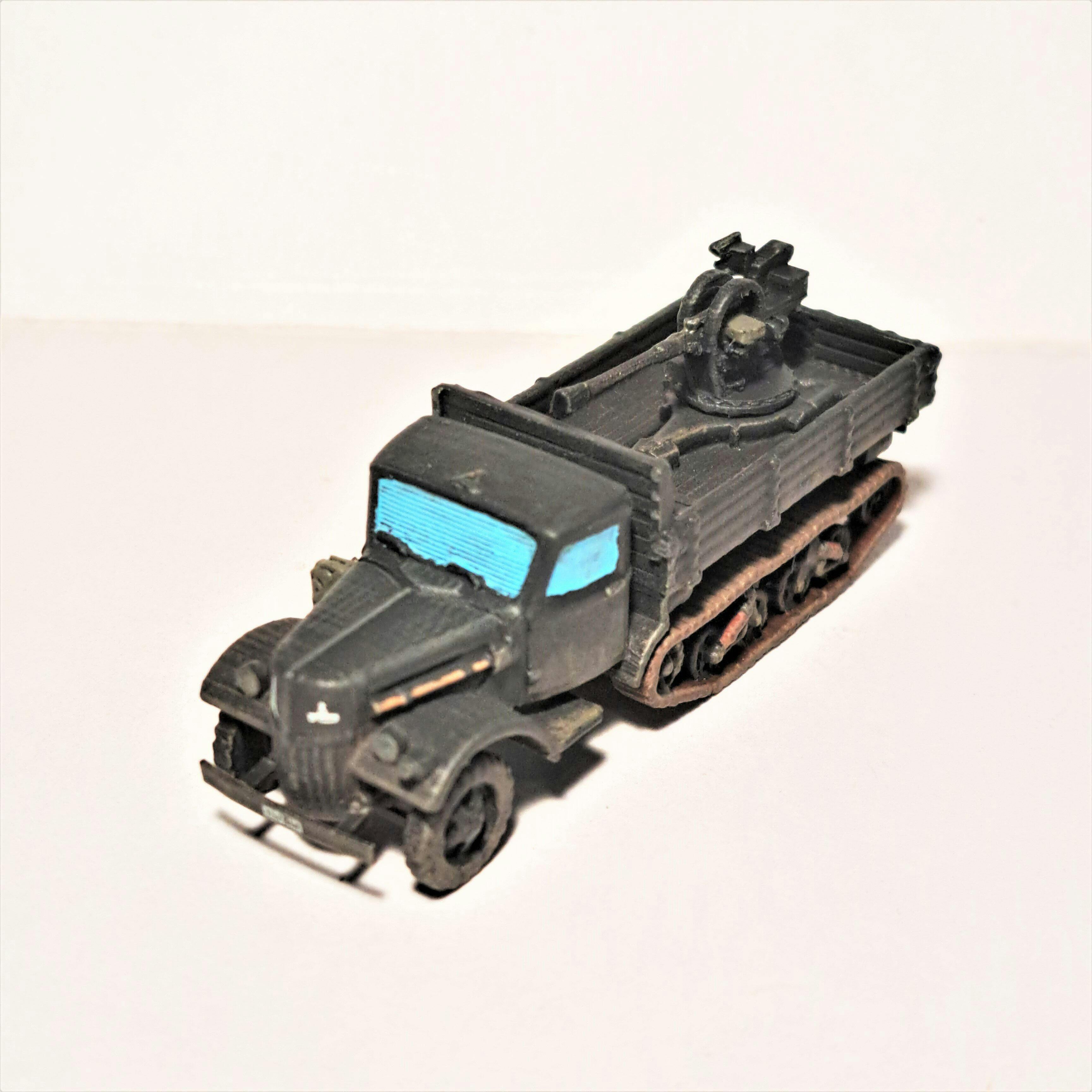 The Ford V3000 Maultier (Flak 38) was a German half-track vehicle adapted to carry a 20mm FlaK 38 anti-aircraft gun in its cargo bed. This modification turned the versatile Maultier into a mobile air defense platform, capable of engaging low-flying aircraft as well as infantry and lightly armored ground targets. The combination of the Maultier's off-road mobility and the firepower of the FlaK 38 made it a practical support vehicle on both the Eastern and Western fronts.