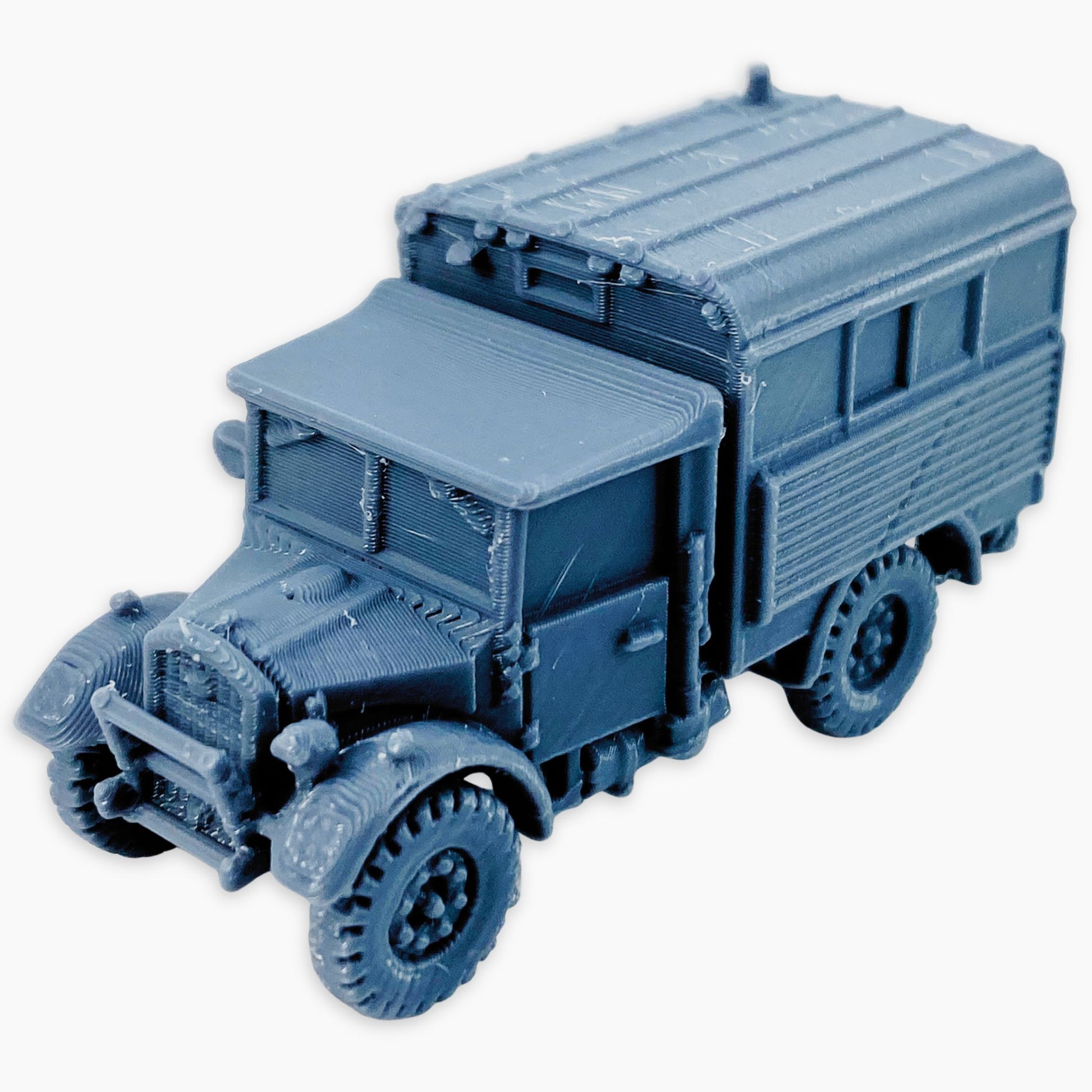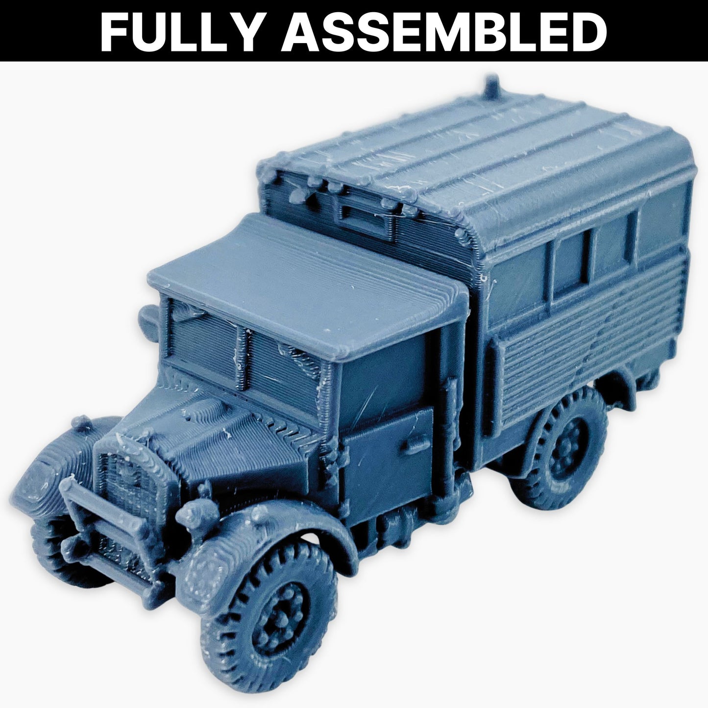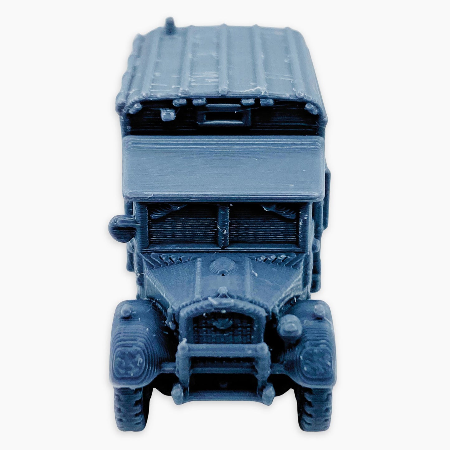 The Fordson WOT2D miniature depicts a British World War II light utility truck featuring an enclosed cab for better crew protection against the elements. Designed to transport troops and equipment, it maintained the simple, durable construction that made the Fordson series valued across Allied supply lines.