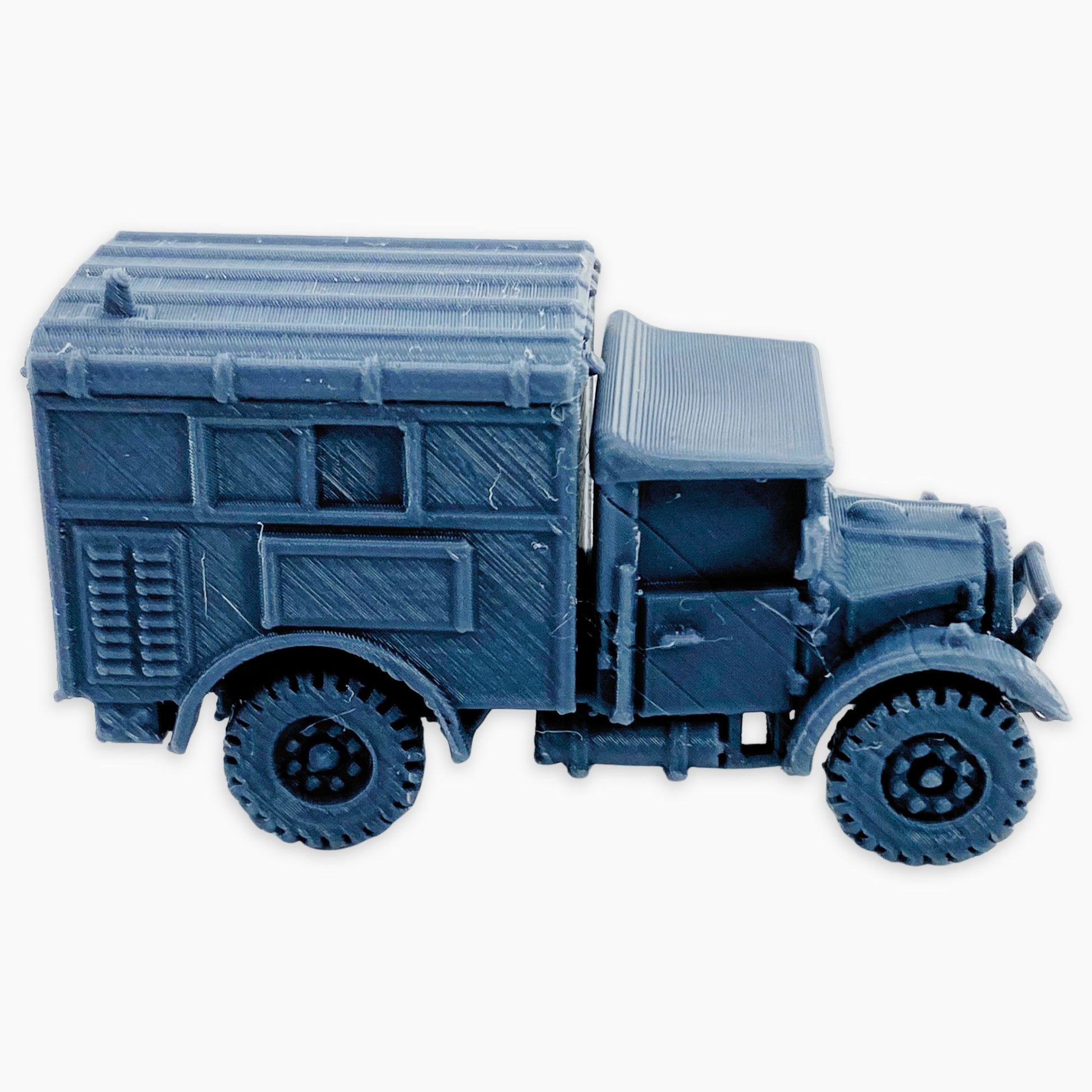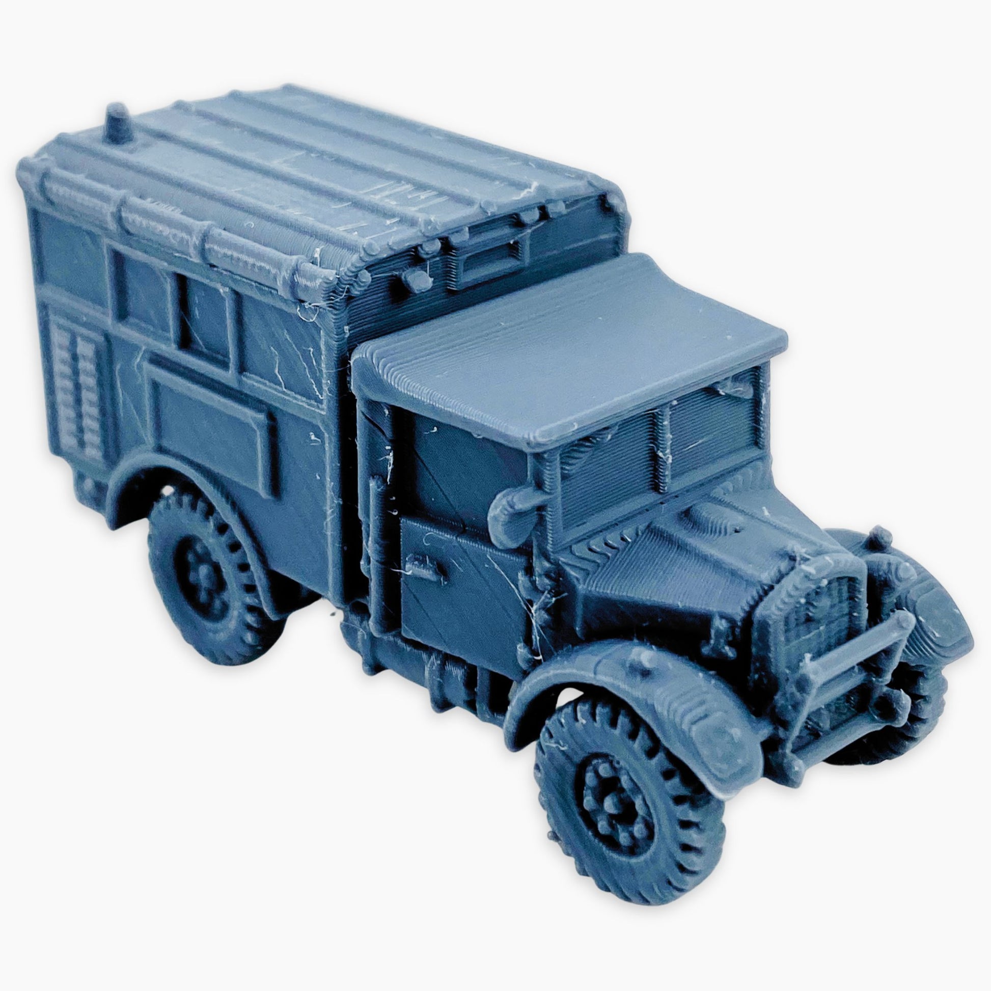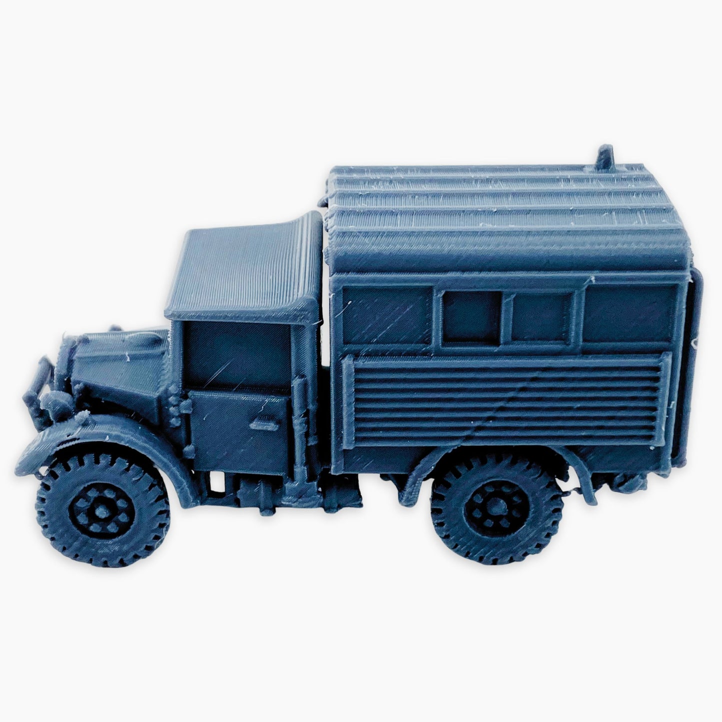 The Fordson WOT2D miniature depicts a British World War II light utility truck featuring an enclosed cab for better crew protection against the elements. Designed to transport troops and equipment, it maintained the simple, durable construction that made the Fordson series valued across Allied supply lines.