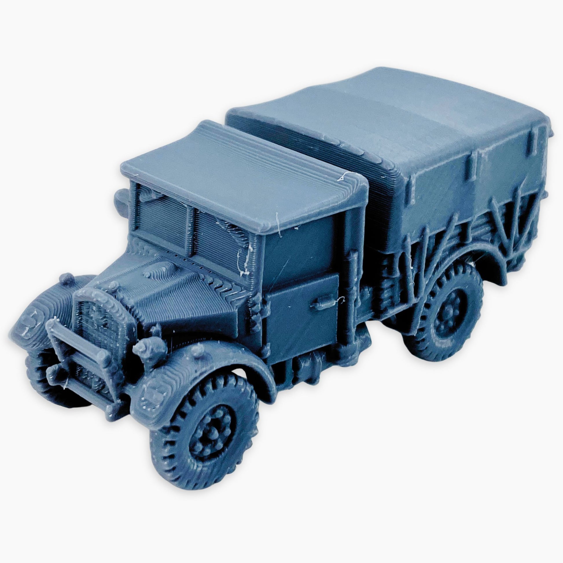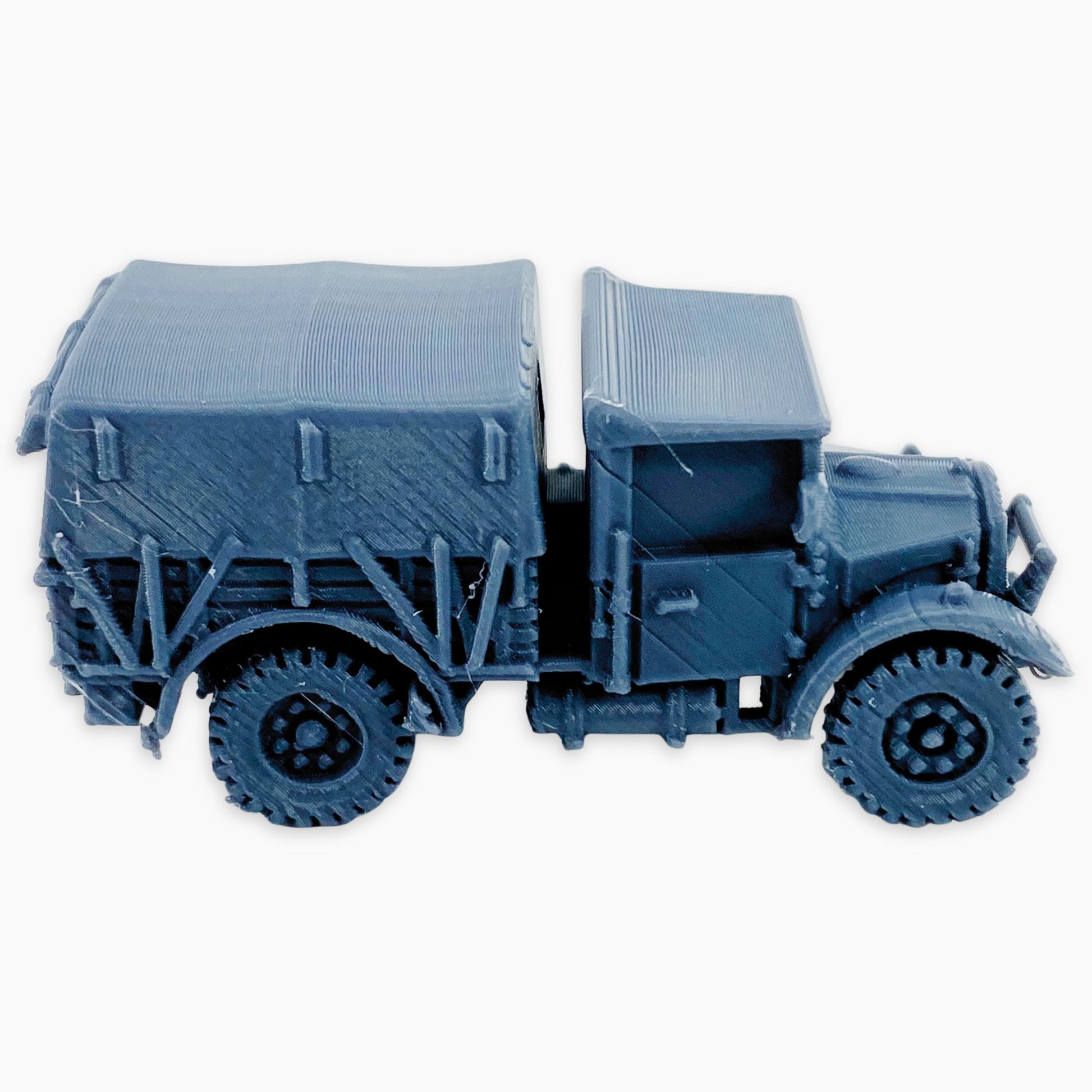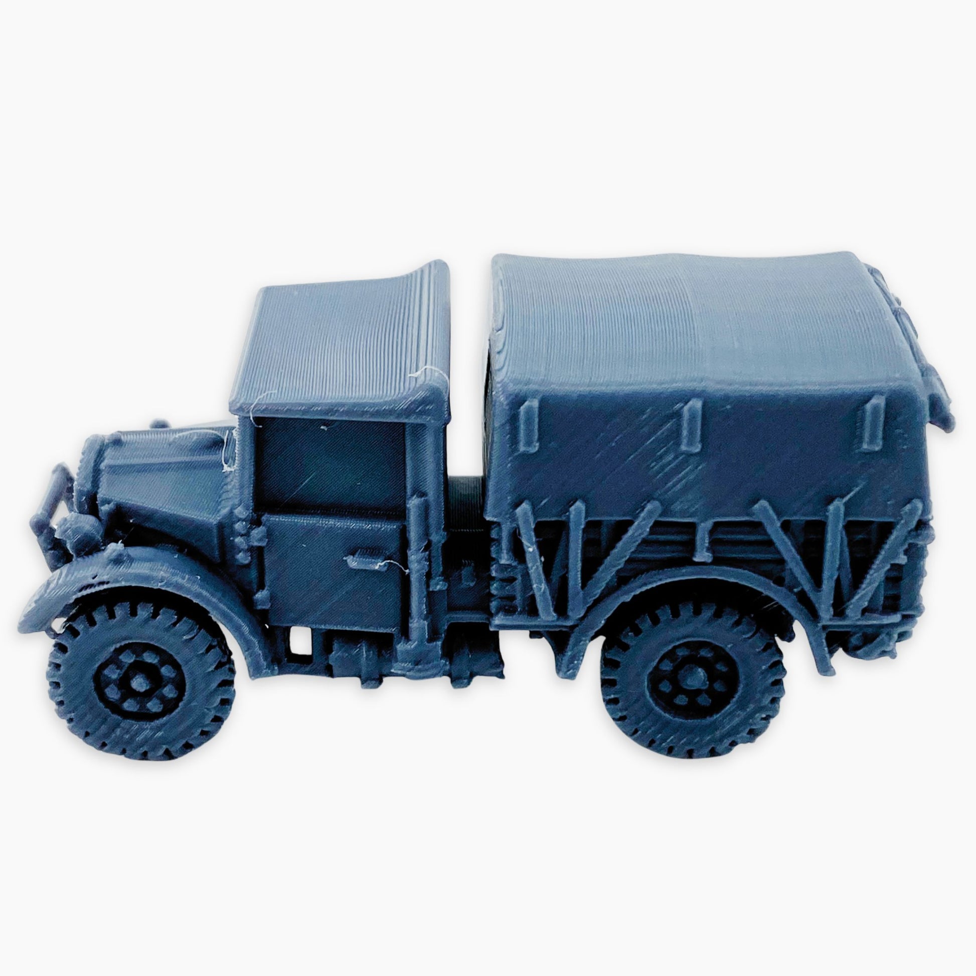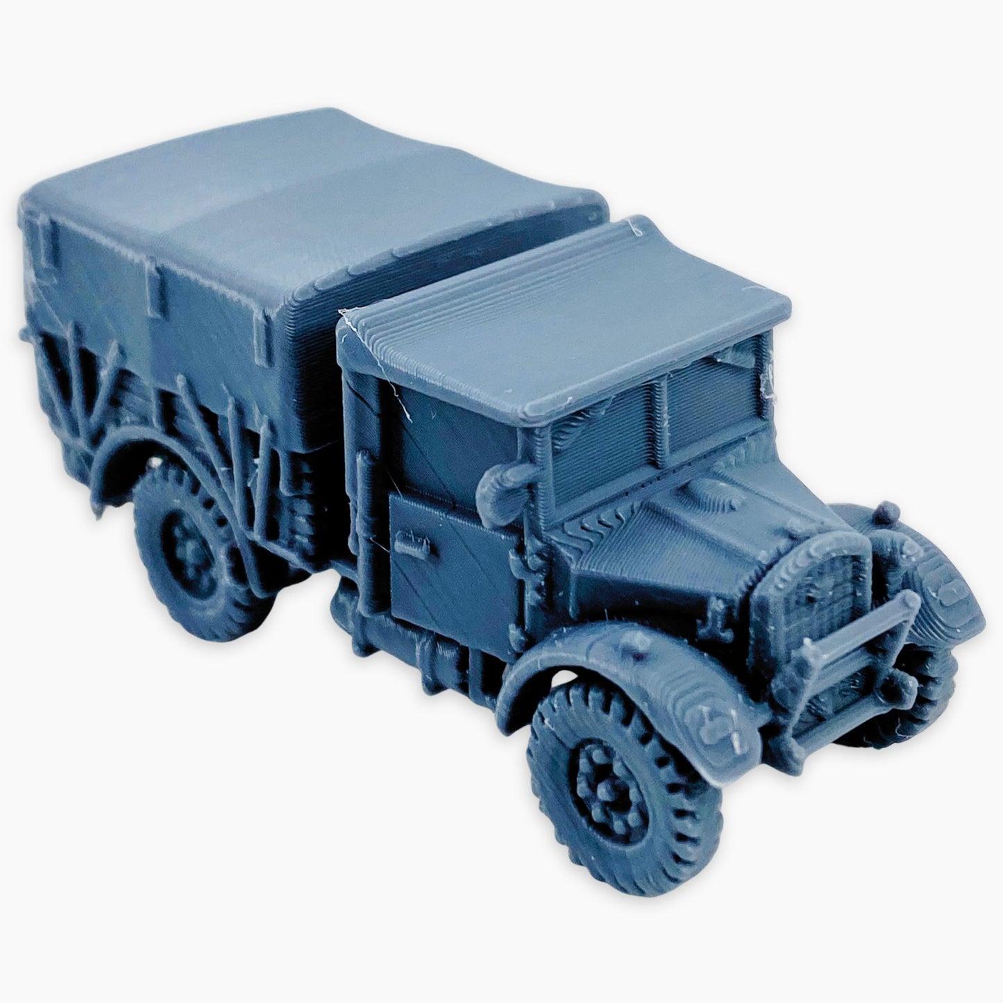 The Fordson WOT2E (covered) miniature represents a British World War II light utility truck fitted with a canvas-covered rear cargo area. This design protected supplies and personnel from the elements while maintaining the vehicle’s versatility for transport and logistical tasks across diverse operational environments.