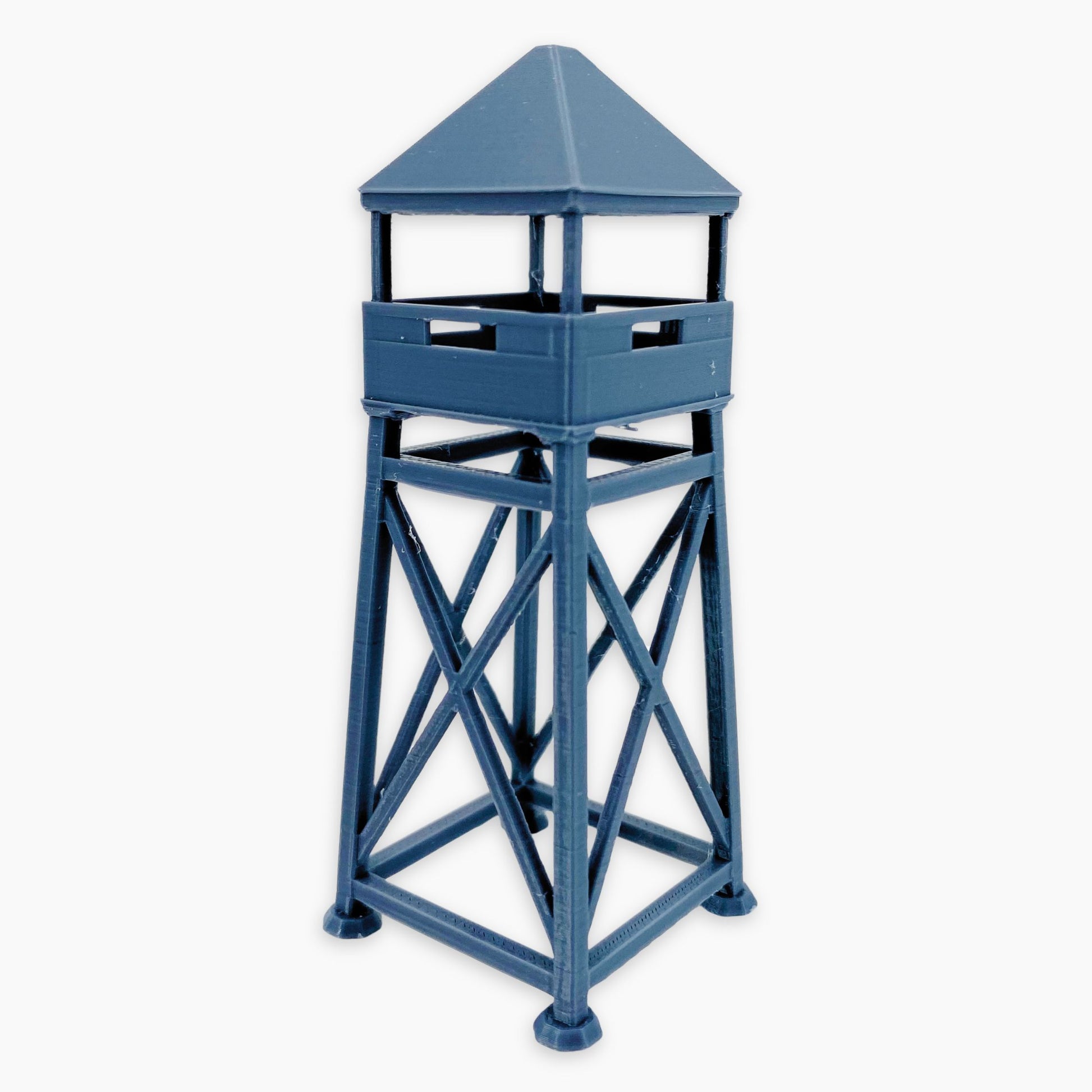 Guard Tower miniature, fully assembled and ready to use, designed as a versatile observation and defensive structure. This tower can serve as a guard post, lookout position, or elevated observation point, making it useful for a variety of scenarios. Suitable for World War II settings as well as modern, post-apocalyptic, or other historical eras, it offers multiple uses across different layouts. Perfect for dioramas, wargaming scenery, or terrain setups in multiple scales.
