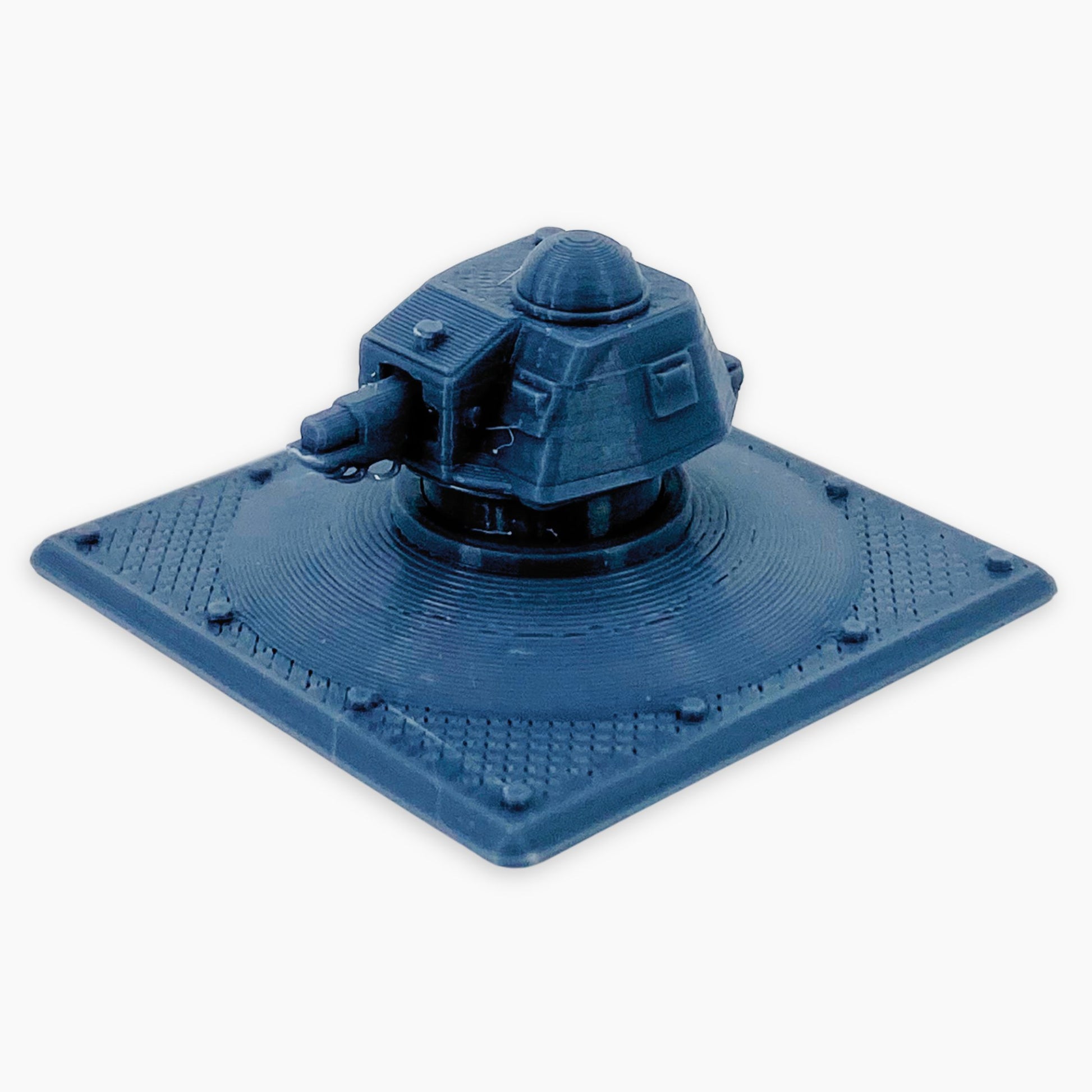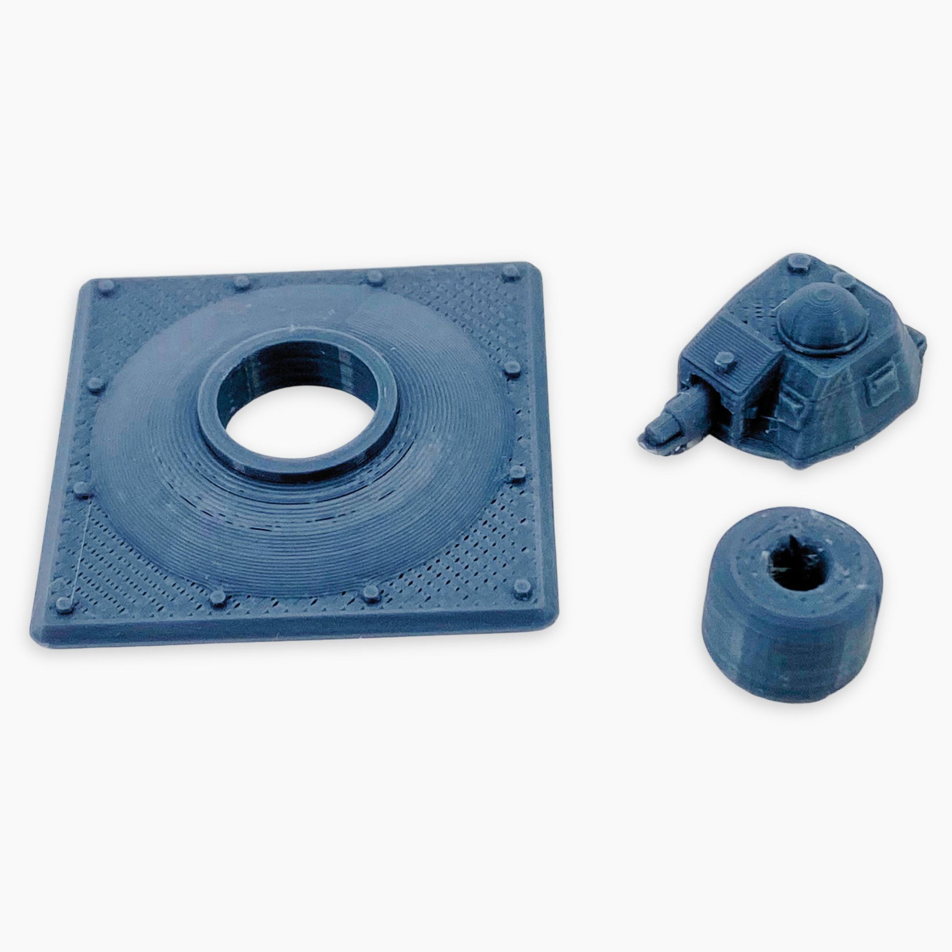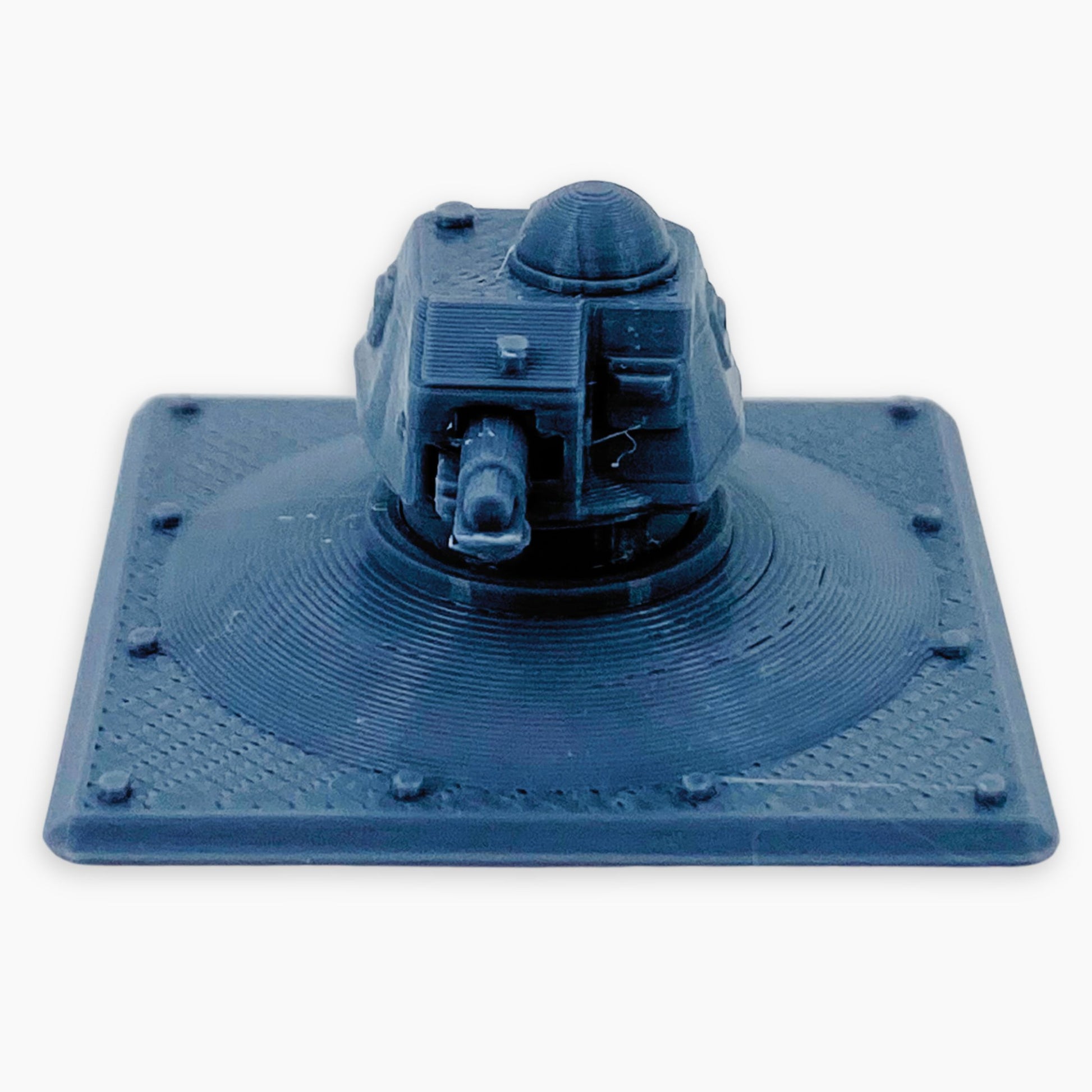 H39 Turret Emplacement miniature, representing a defensive position created from the turret of the French Hotchkiss H39 light tank, later repurposed by German forces during World War II. These turret emplacements were installed in fortifications, bunkers, and strongpoints, especially along the Atlantic Wall and in occupied territories, to provide armored firepower in fixed positions. This is a 3-piece model that requires some assembly, making it a unique and authentic fortification piece for dioramas, wargaming scenery, or WWII terrain in multiple scales.