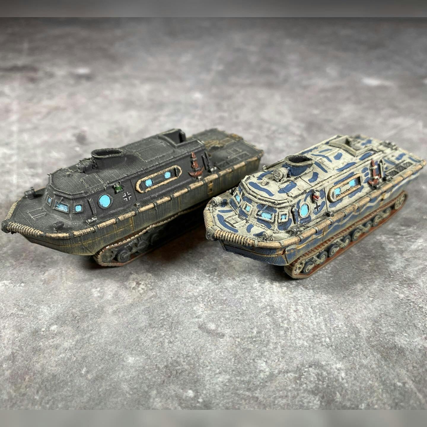 The Landwasserschlepper miniature depicts the German amphibious tractor used in World War II for transportation and engineering tasks. Designed for moving troops, supplies, and equipment across water and difficult terrain, it lacked armor and weaponry but was highly effective in logistical operations. This model is perfect for historical wargaming scenarios involving river crossings, amphibious assaults, and engineering support missions.