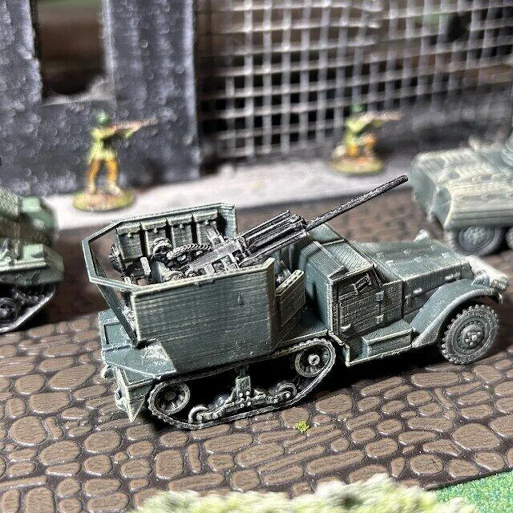 The M15 Half-track was an American self-propelled anti-aircraft vehicle used in World War II. Built on an M3 half-track chassis, it featured a 37 mm autocannon and two .50 caliber machine guns. It provided mobile anti-aircraft protection and was effective against ground targets, seeing action in multiple theaters of the war.