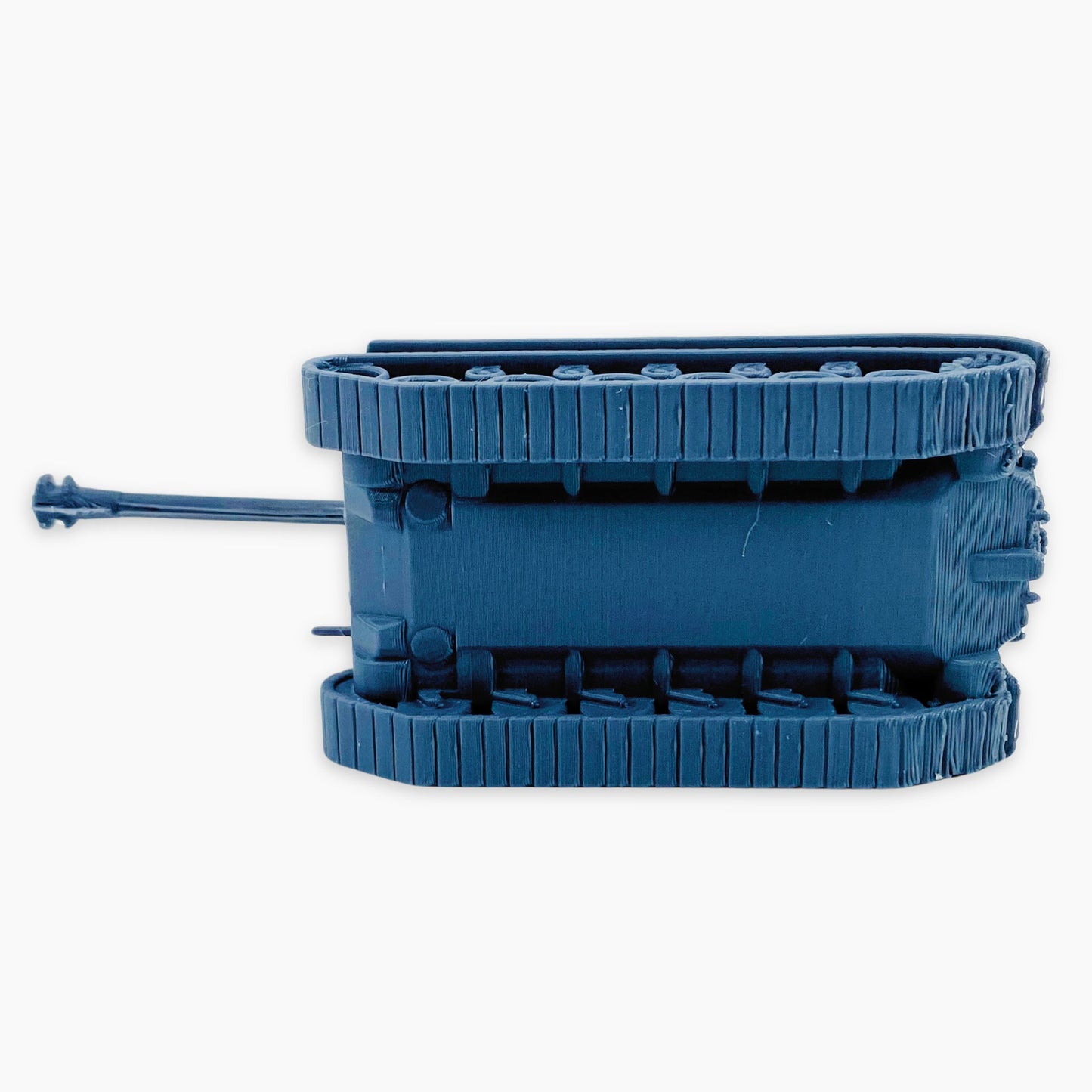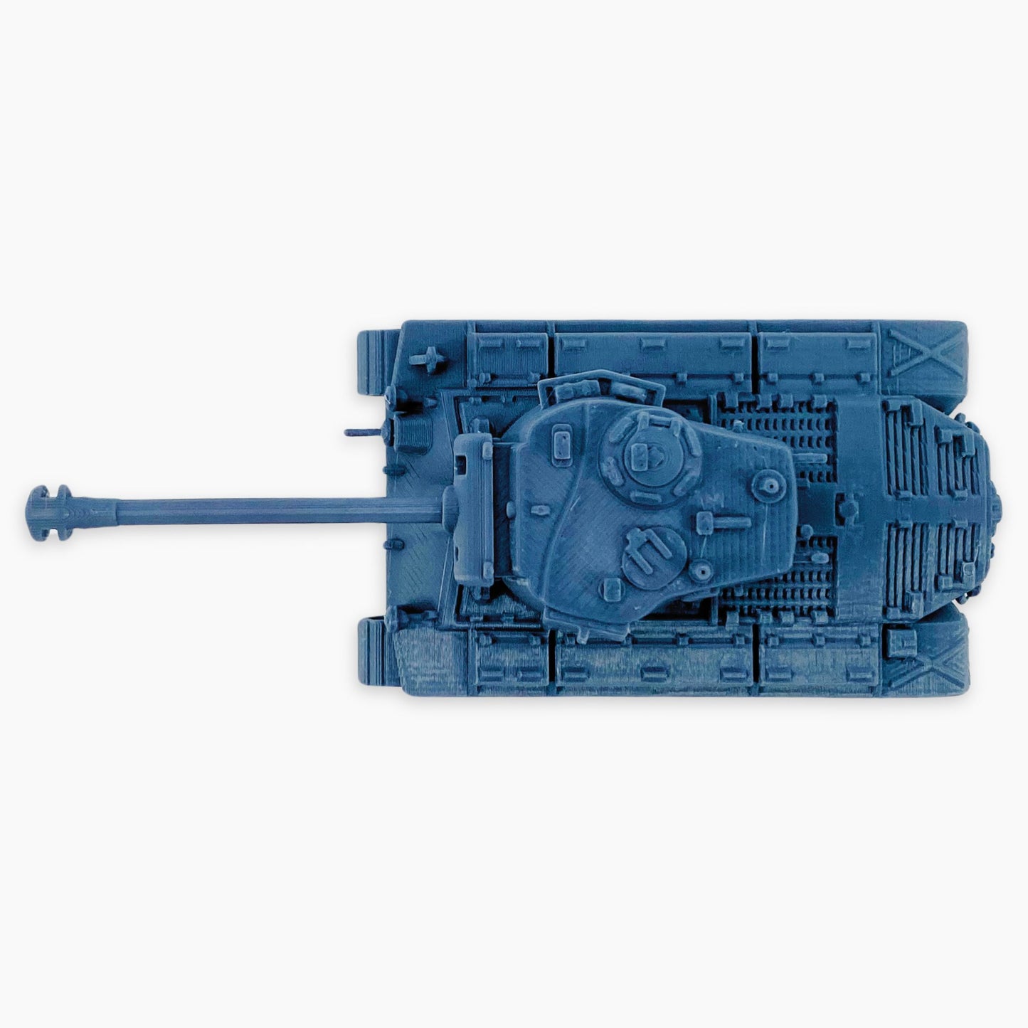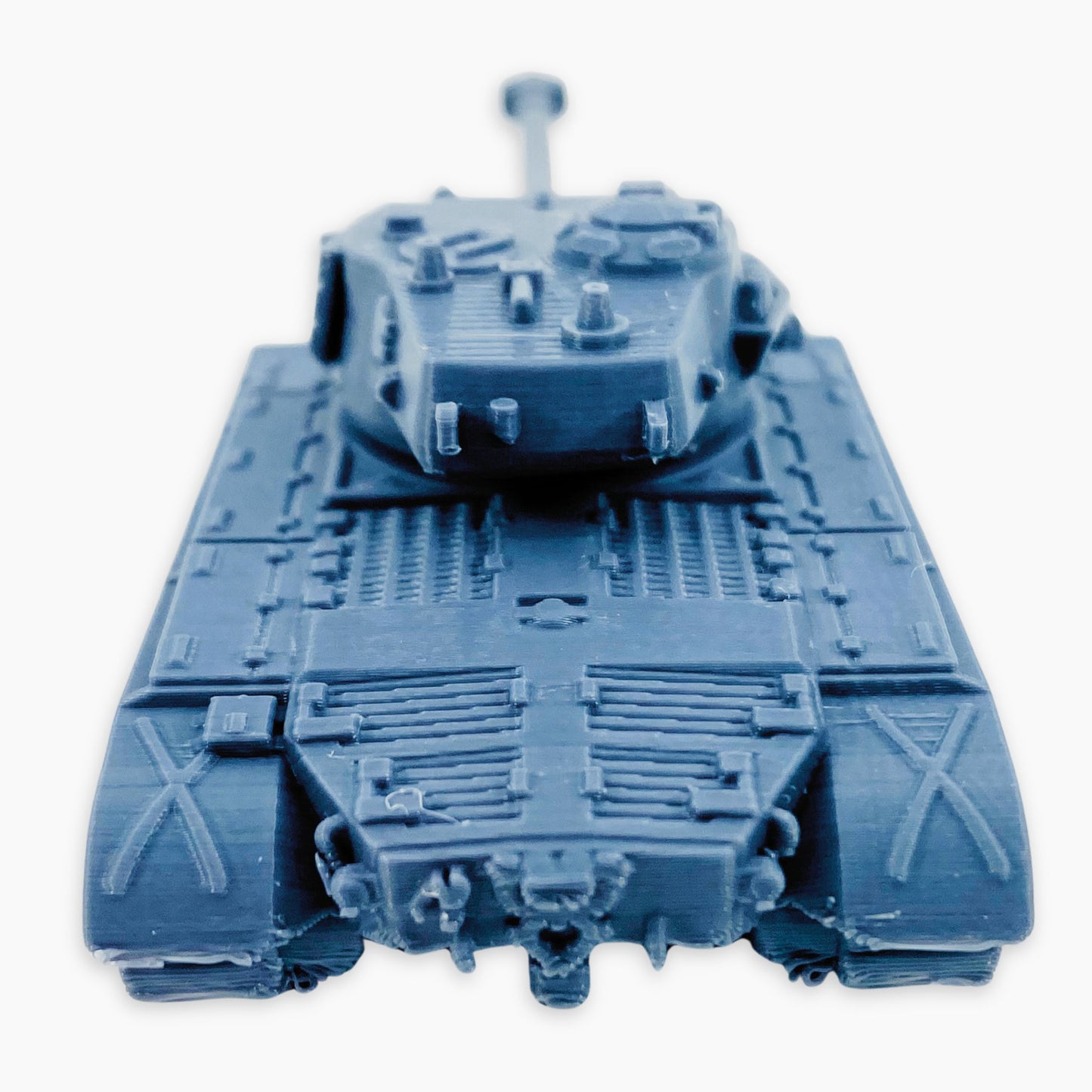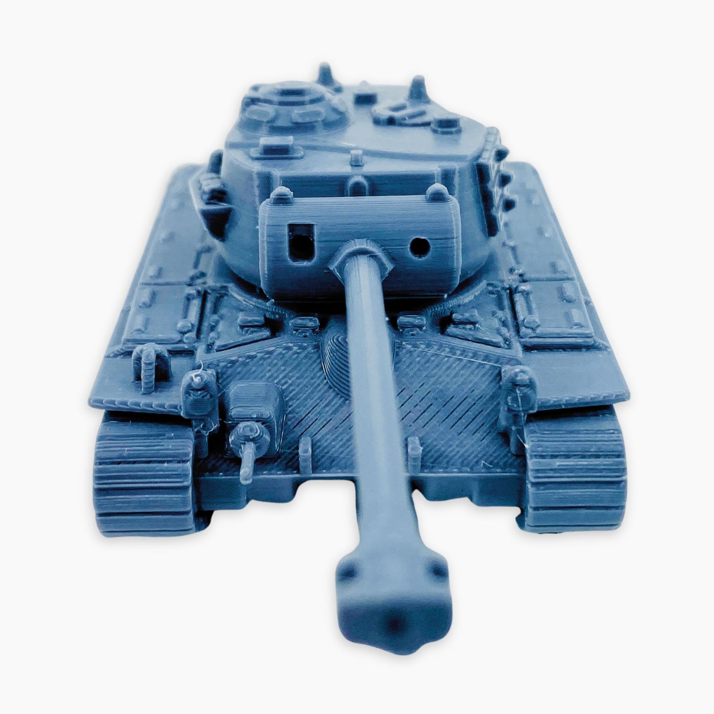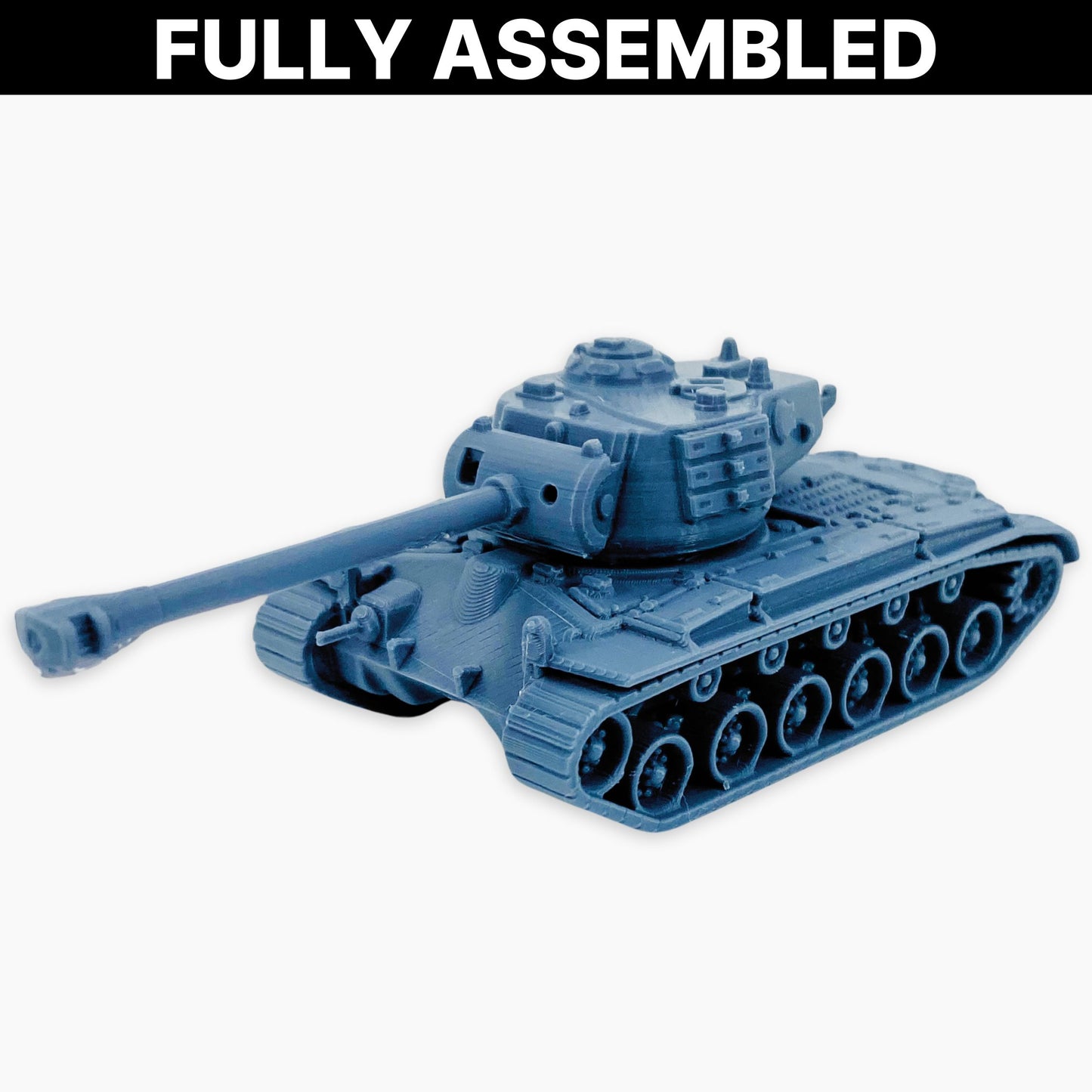 The miniature M26 Pershing depicts a late World War II American heavy tank designed to counter German heavy armor. Armed with a powerful 90mm gun and featuring improved armor protection, it combined firepower and mobility. The M26 served in both Europe and later in Korea, marking the transition from medium to heavy tanks in U.S. forces.