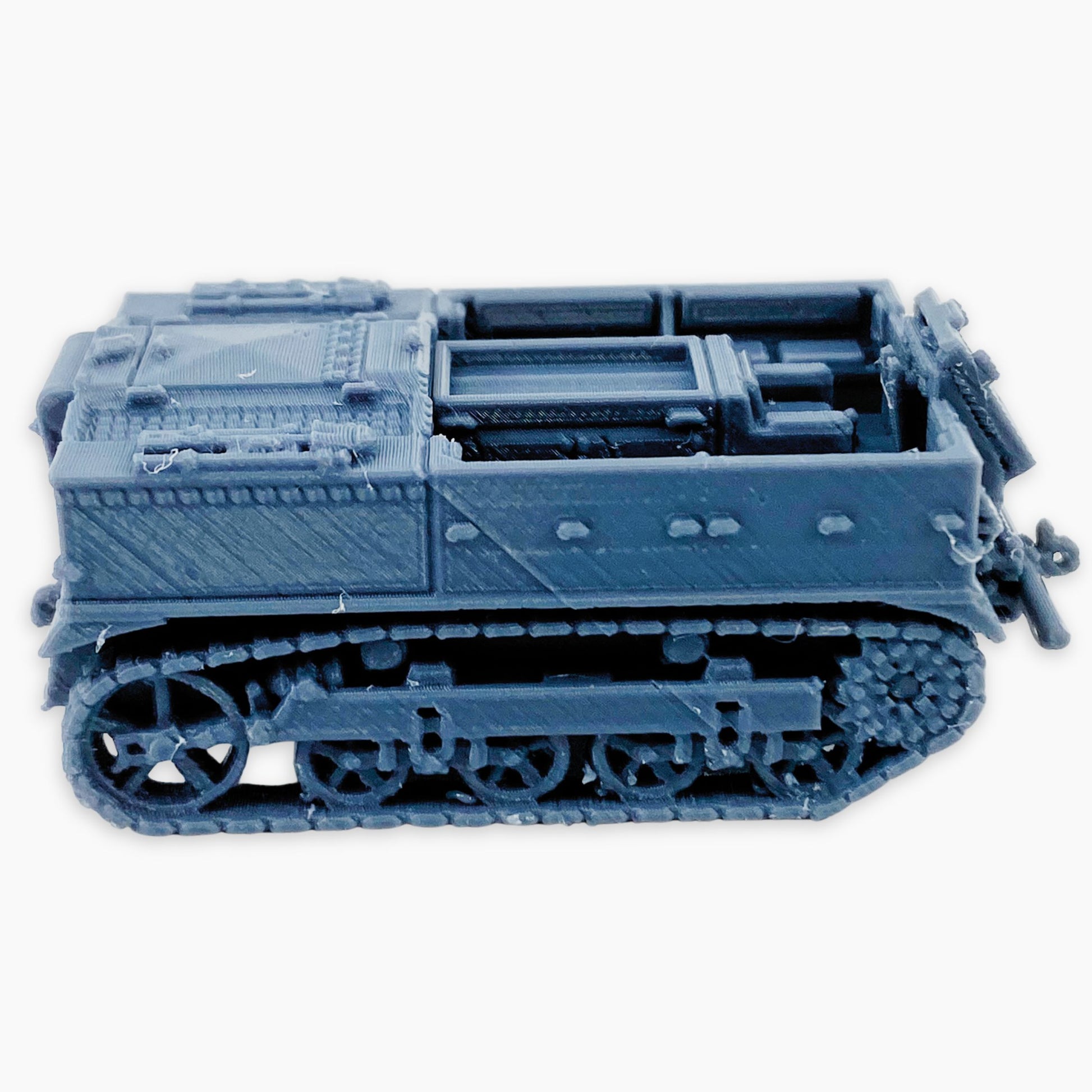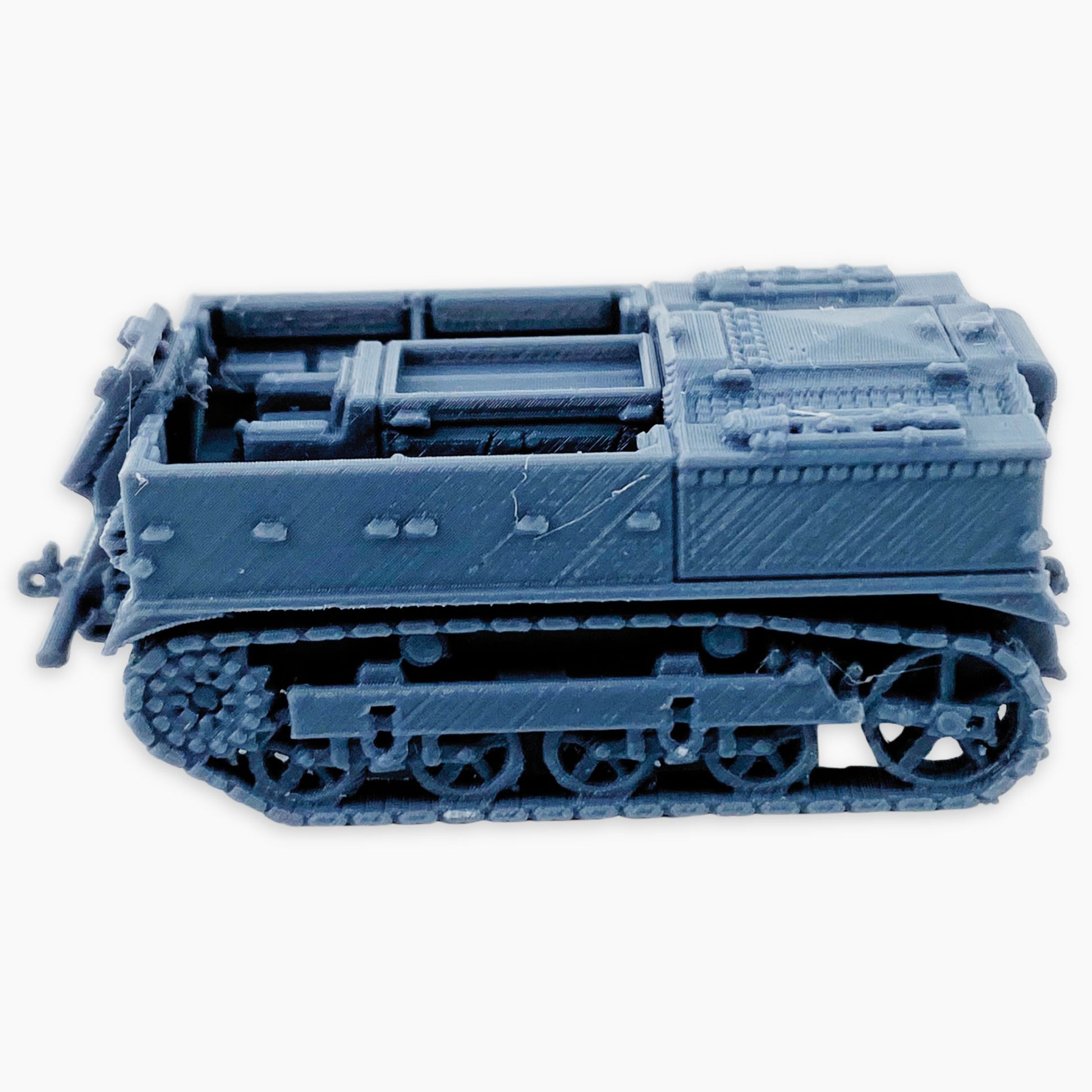 M5 High Speed Tractor miniature, depicting the American artillery tractor widely used during World War II and into the postwar years. Built to tow heavy guns such as the 105 mm and 155 mm howitzers, the M5 featured a fully tracked chassis for excellent cross-country mobility, a rear platform for ammunition storage, and seating for the gun crew. Its reliability and versatility made it a key support vehicle for U.S. and Allied forces in multiple theaters of war. This model is a great addition to dioramas, wargaming scenery, or WWII vehicle collections in various scales.