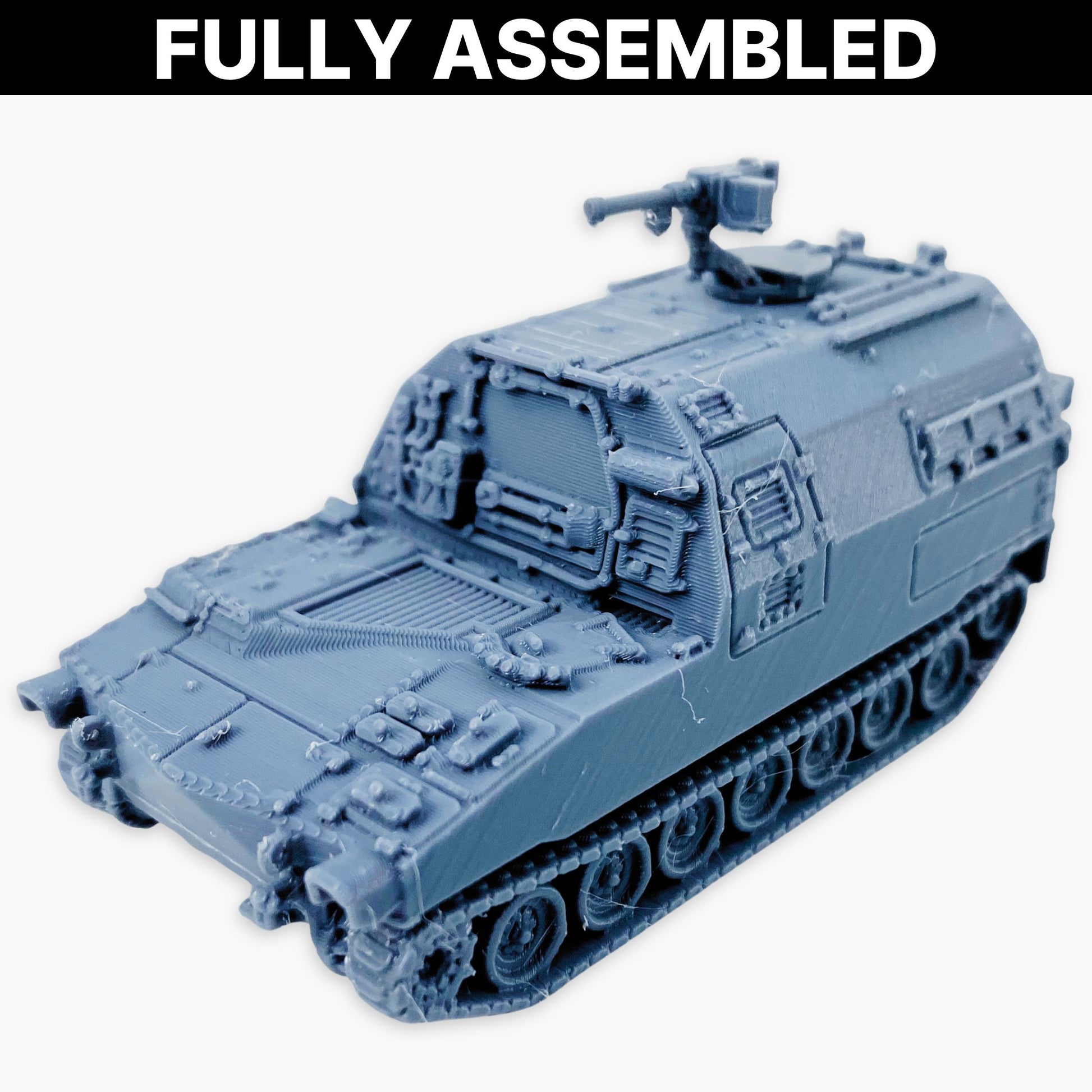 M992 miniature, representing the American Field Artillery Ammunition Support Vehicle (FAASV), developed to resupply the M109 self-propelled howitzer. Built on the same chassis as the M109, the M992 was designed to carry artillery ammunition, fuel, and supplies directly to the guns, ensuring rapid and efficient resupply under combat conditions. Enclosed for crew protection, it featured storage racks for shells, a conveyor system for quick transfer, and the ability to operate closely alongside artillery units. Entering service in the Cold War era, it became a vital support vehicle for U.S. and NATO artillery forces and continues to serve in modernized forms today. This model is ideal for Cold War and modern-era dioramas, wargaming scenery, or military vehicle collections in multiple scales.