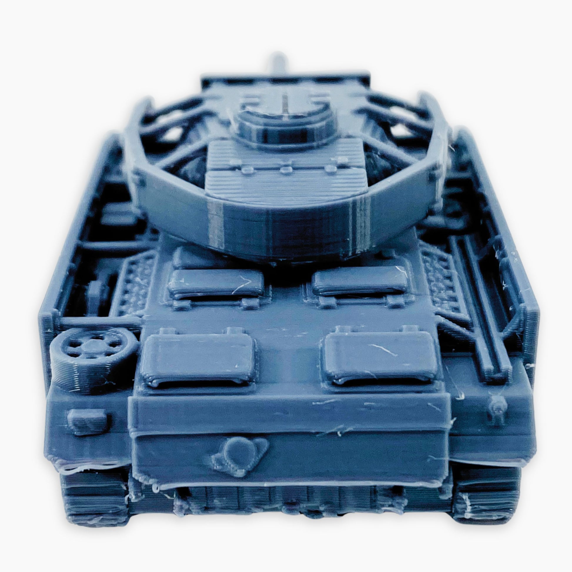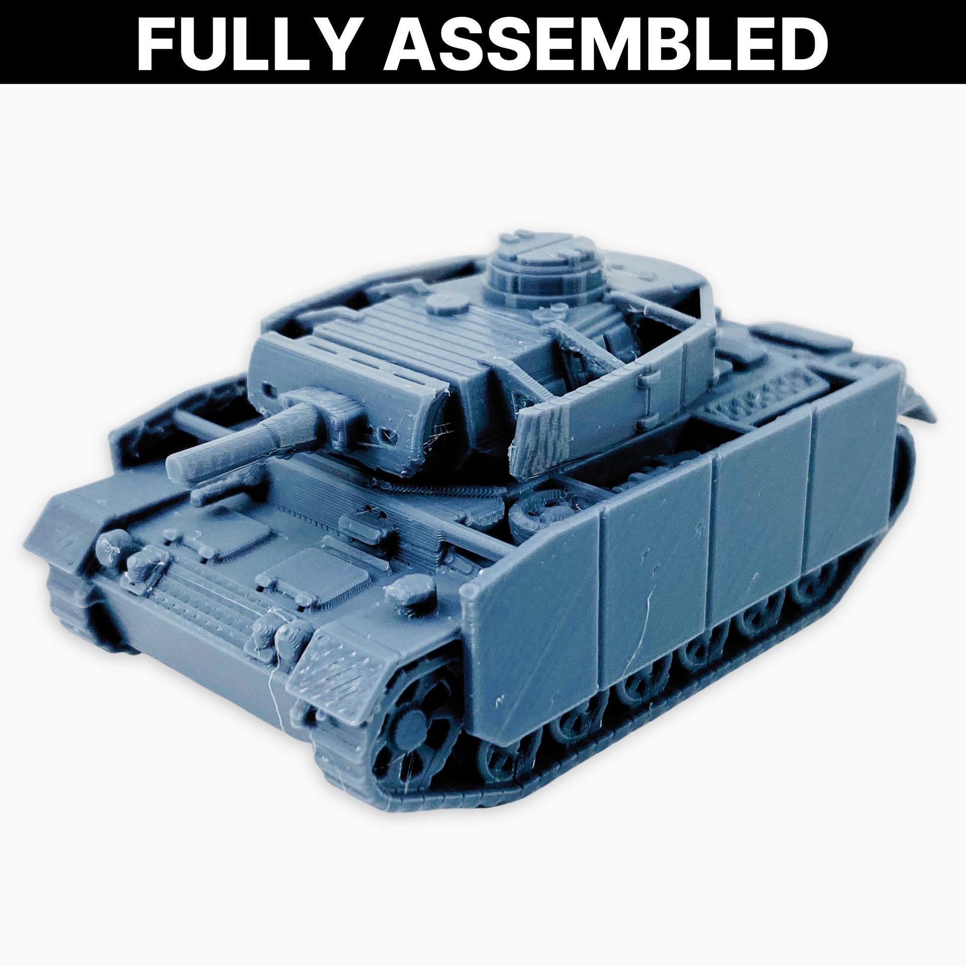 Panzer III Ausf. J (schürzen) miniature, representing the German medium tank equipped with side armor skirts (schürzen) used during World War II. This model highlights the additional protection designed to defend against anti-tank rifles and shaped-charge weapons, while retaining the distinctive profile of the Ausf. J variant. Highly detailed with accurate hull, turret, and tracks, it is ideal for dioramas, wargaming scenery, or historical collections. Suitable for World War II tabletop battles or display in multiple scales.