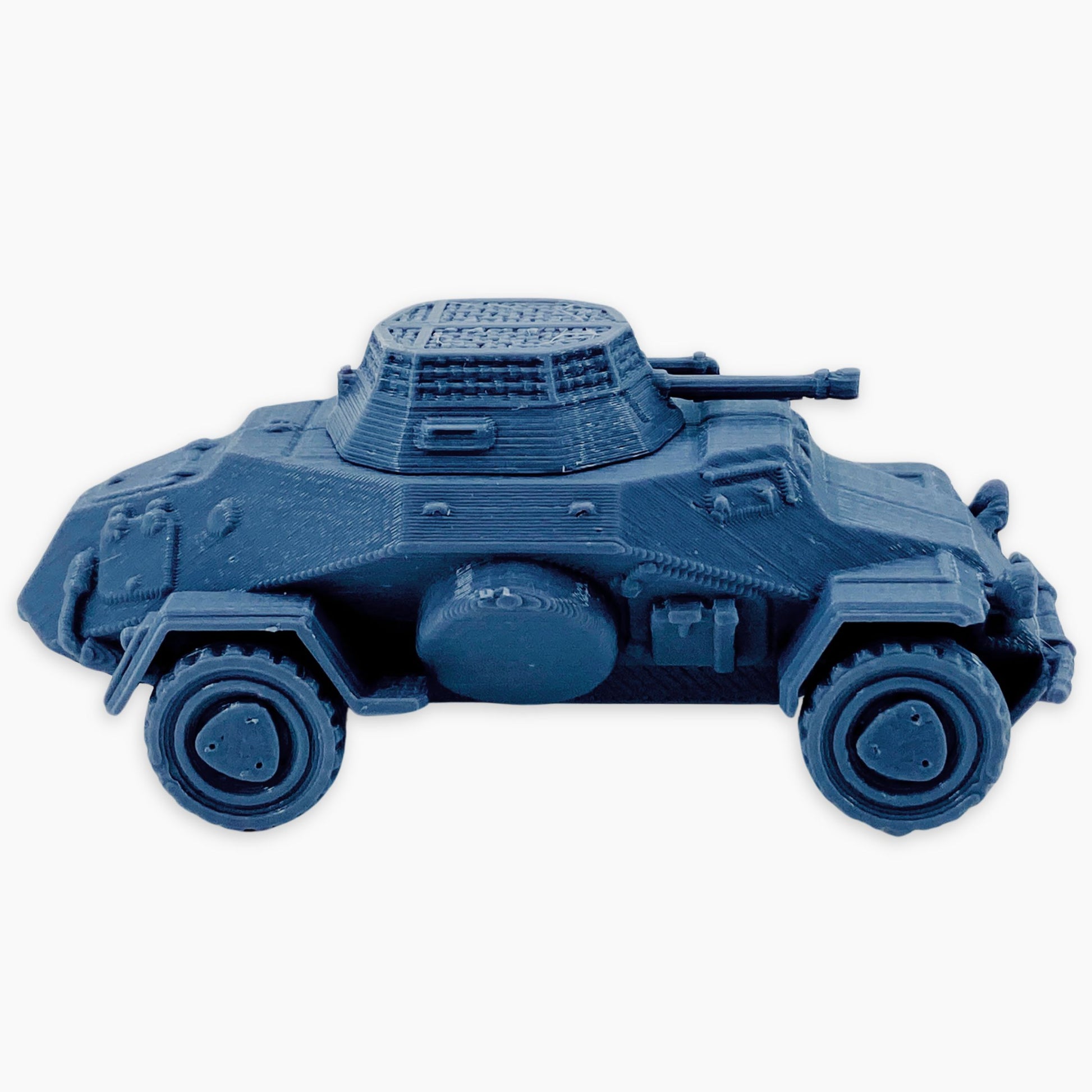 The Sd.Kfz. 222 was a German WWII light armored car with a 20mm autocannon. It was used for reconnaissance, offering good mobility but limited protection.