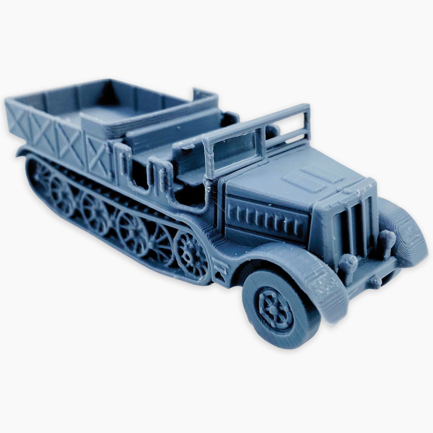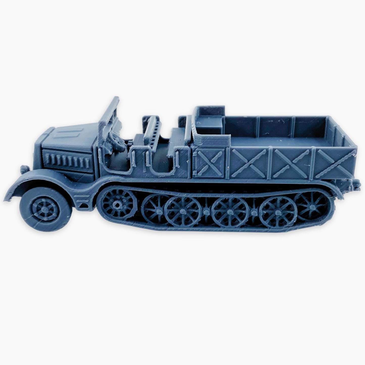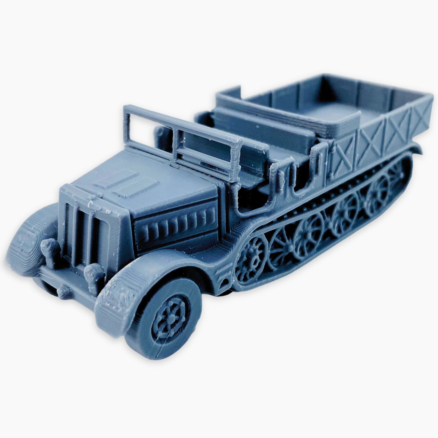 The Sd.Kfz. 9 Famo (windows up) miniature depicts a German World War II heavy half-track with its cab windows in the raised position. Used mainly for towing heavy artillery or recovering disabled tanks, this version features enclosed windows to offer greater crew protection from dust, debris, and harsh weather conditions during recovery and transport missions.