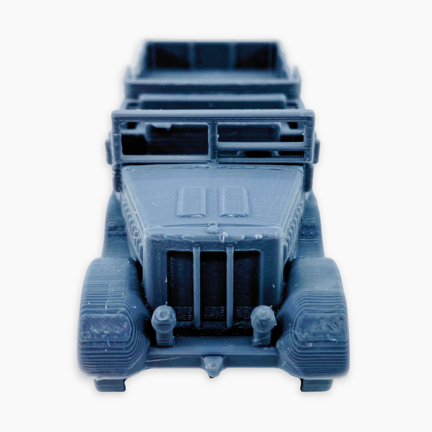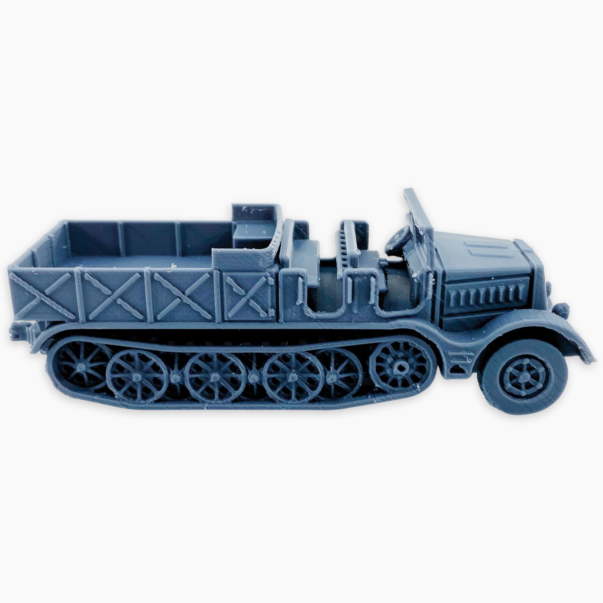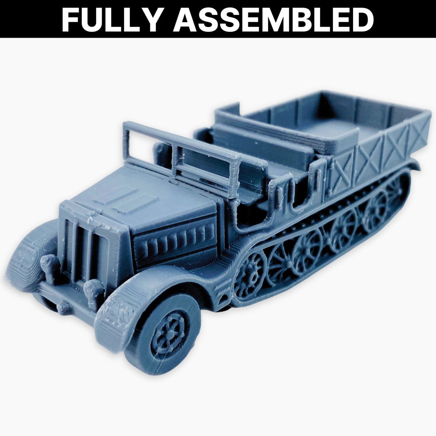 The Sd.Kfz. 9 Famo (windows up) miniature depicts a German World War II heavy half-track with its cab windows in the raised position. Used mainly for towing heavy artillery or recovering disabled tanks, this version features enclosed windows to offer greater crew protection from dust, debris, and harsh weather conditions during recovery and transport missions.