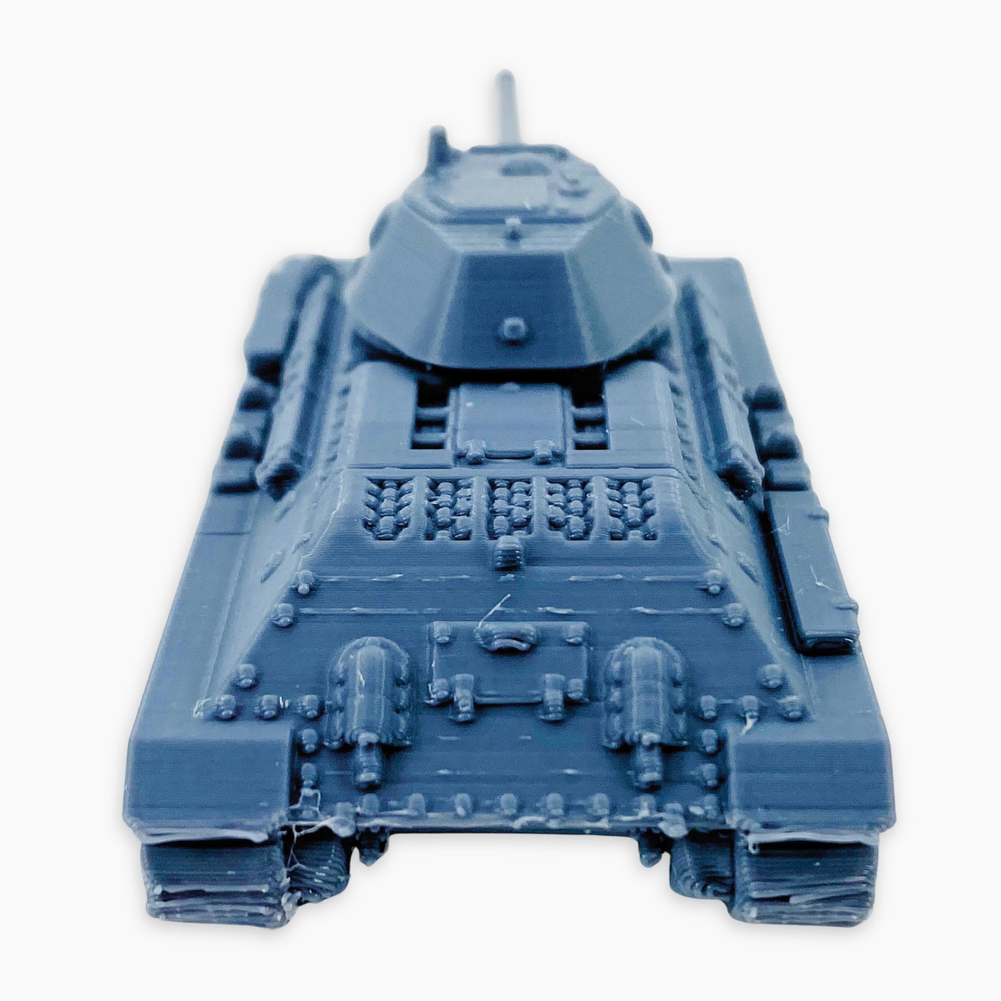 T-34/76 Model 1941 miniature, representing one of the most widely produced versions of the famous Soviet medium tank during World War II. Introduced as an improvement over the 1940 model, this version featured the longer and more powerful 76.2 mm F-34 gun, thicker armor, and refined design elements that increased battlefield effectiveness. The T-34/76 Model 1941 became a backbone of the Red Army during the early years of the German-Soviet conflict, combining mobility, firepower, and protection in a way that reshaped tank warfare. A key historical vehicle, perfect for WWII dioramas, wargaming scenarios, or military model collections in multiple scales.